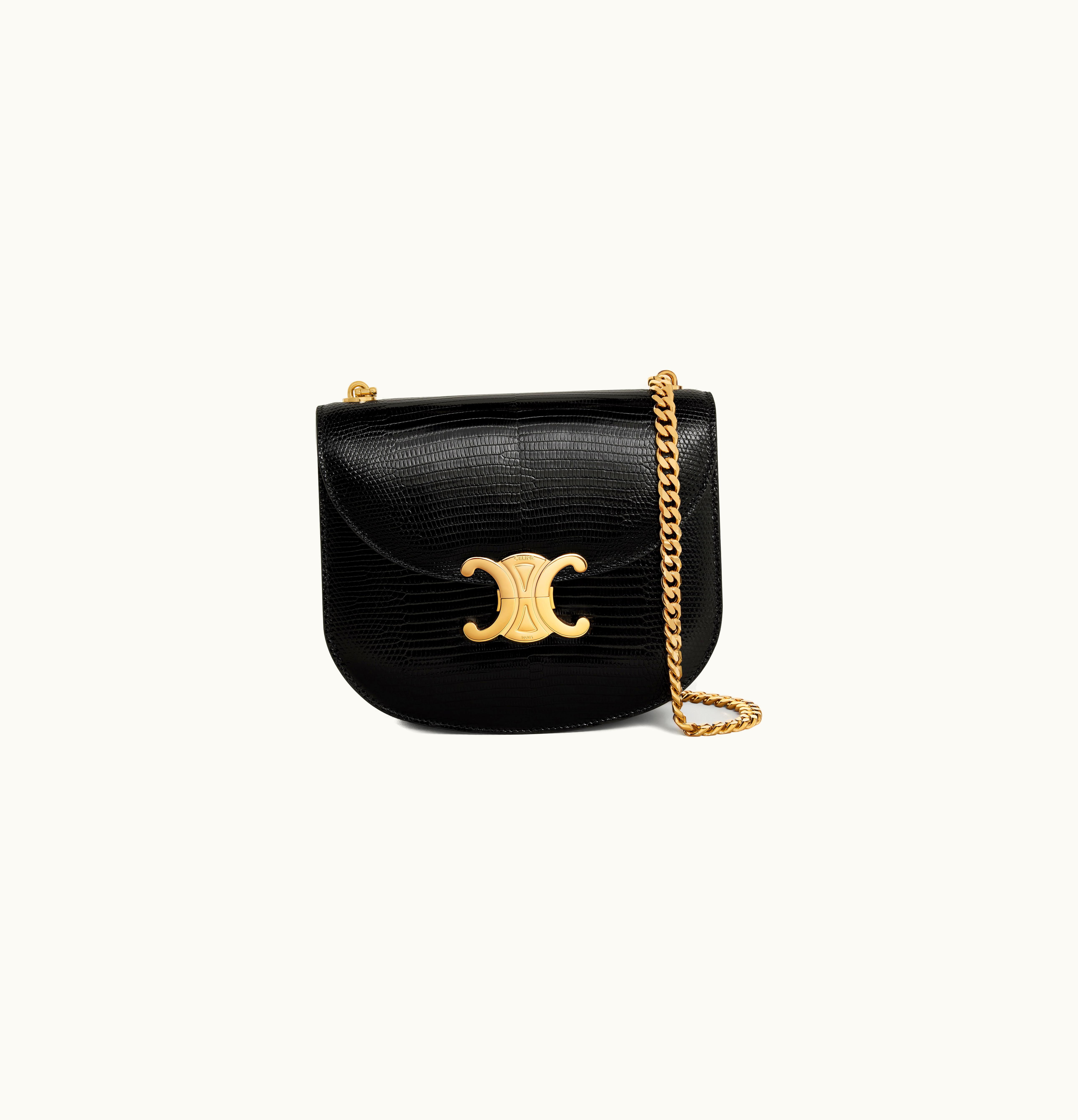 Celine Teen Chain Besace Triomphe In Lizard Black | GLINT