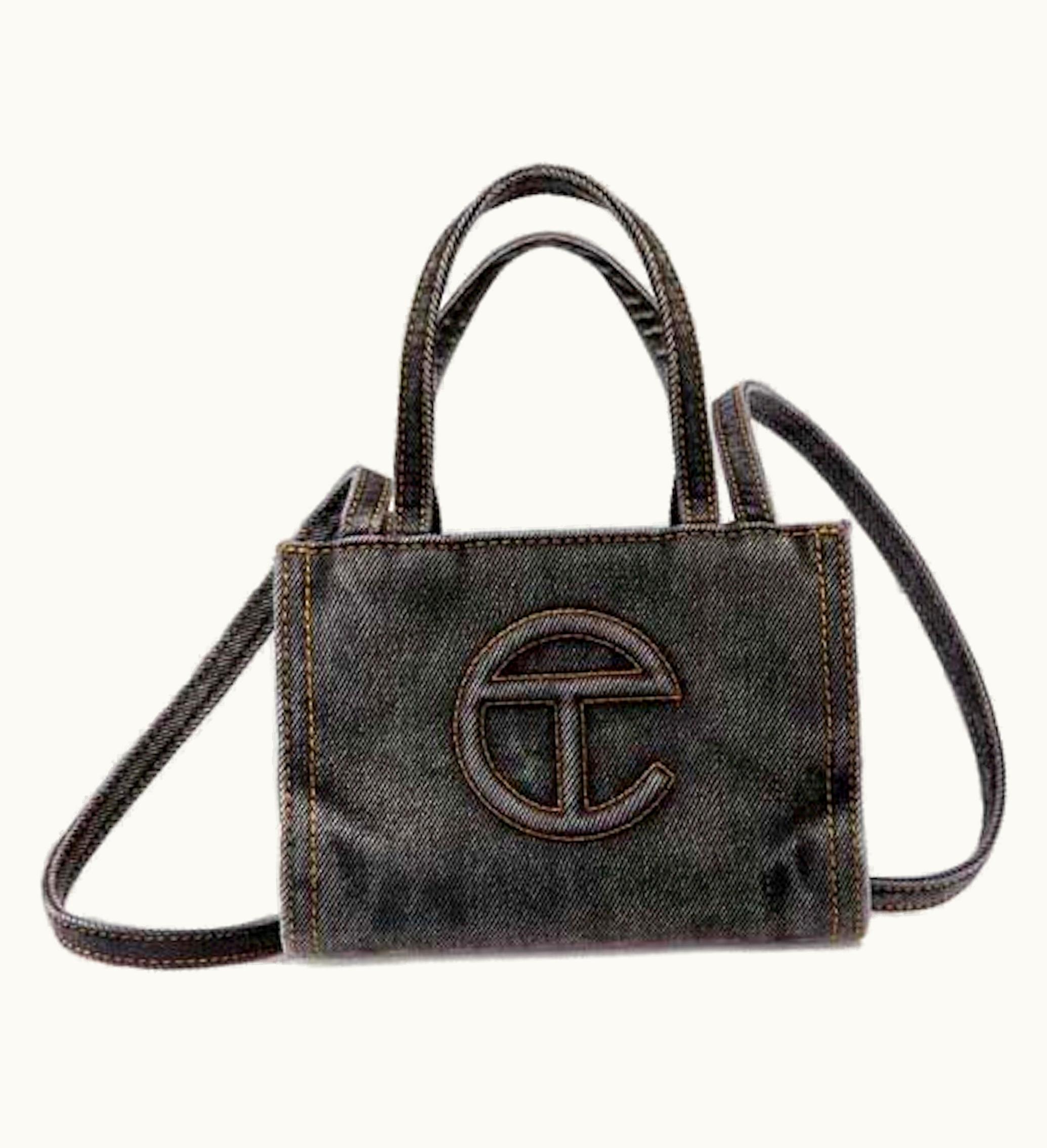 Telfar Small Denim Shopping Bag Black | GLINT