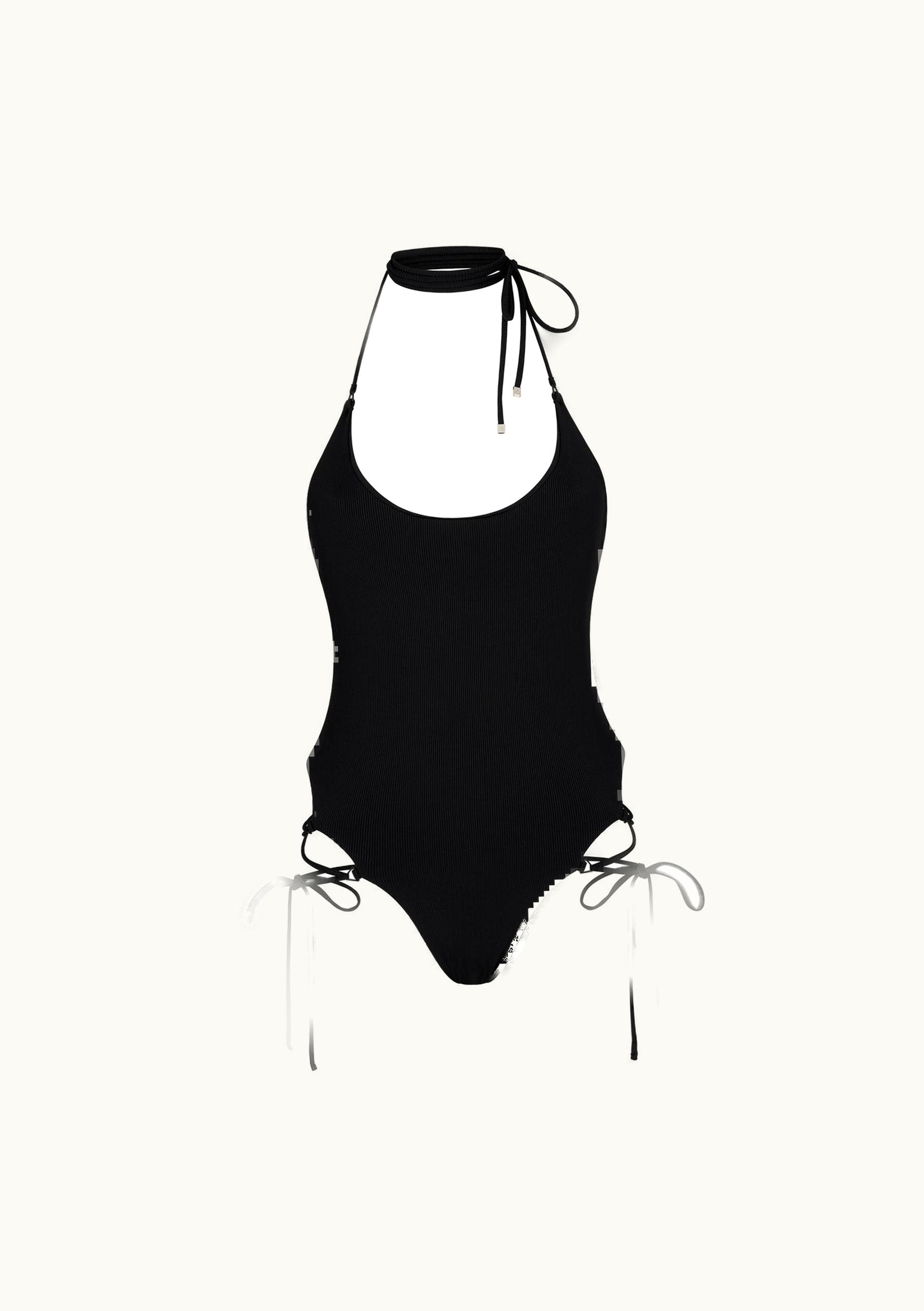 The Attico Ribbed Luxe One Piece Swimsuit Black | GLINT