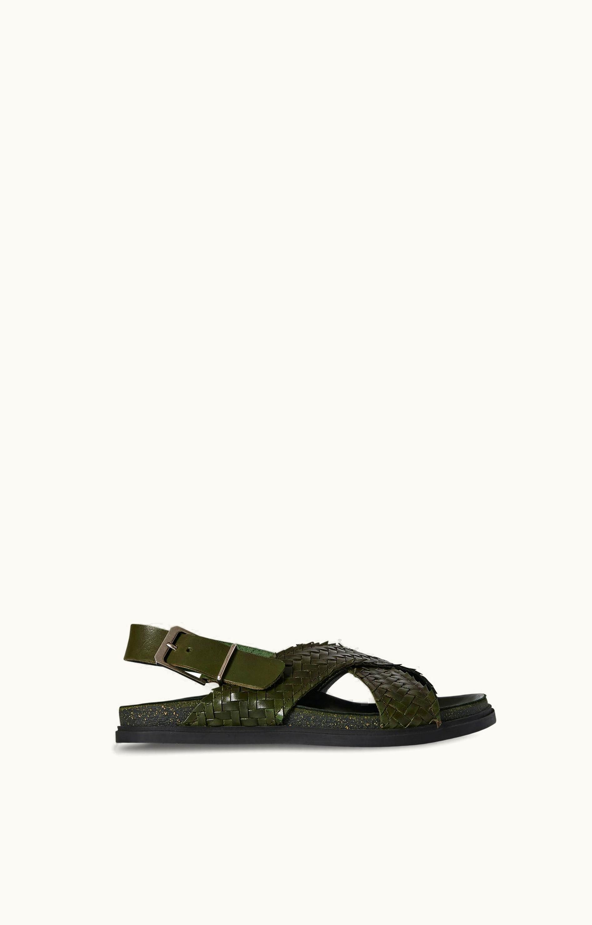 The Row Buckle Sandal Green In Leather | GLINT