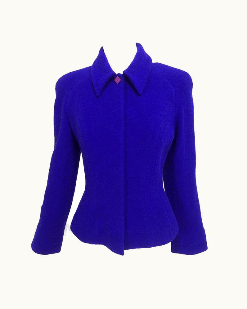 Thierry Mugler Purple Boucle Fitted Jacket | GLINT
