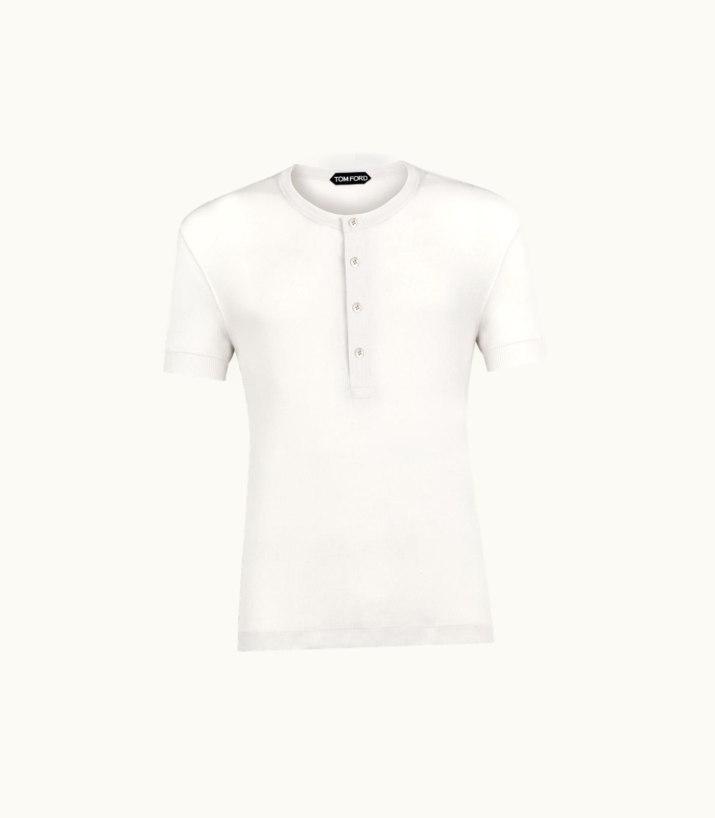 Tom Ford Modal Cotton Brushed Back Rib Short Sleeve Henley Black | GLINT