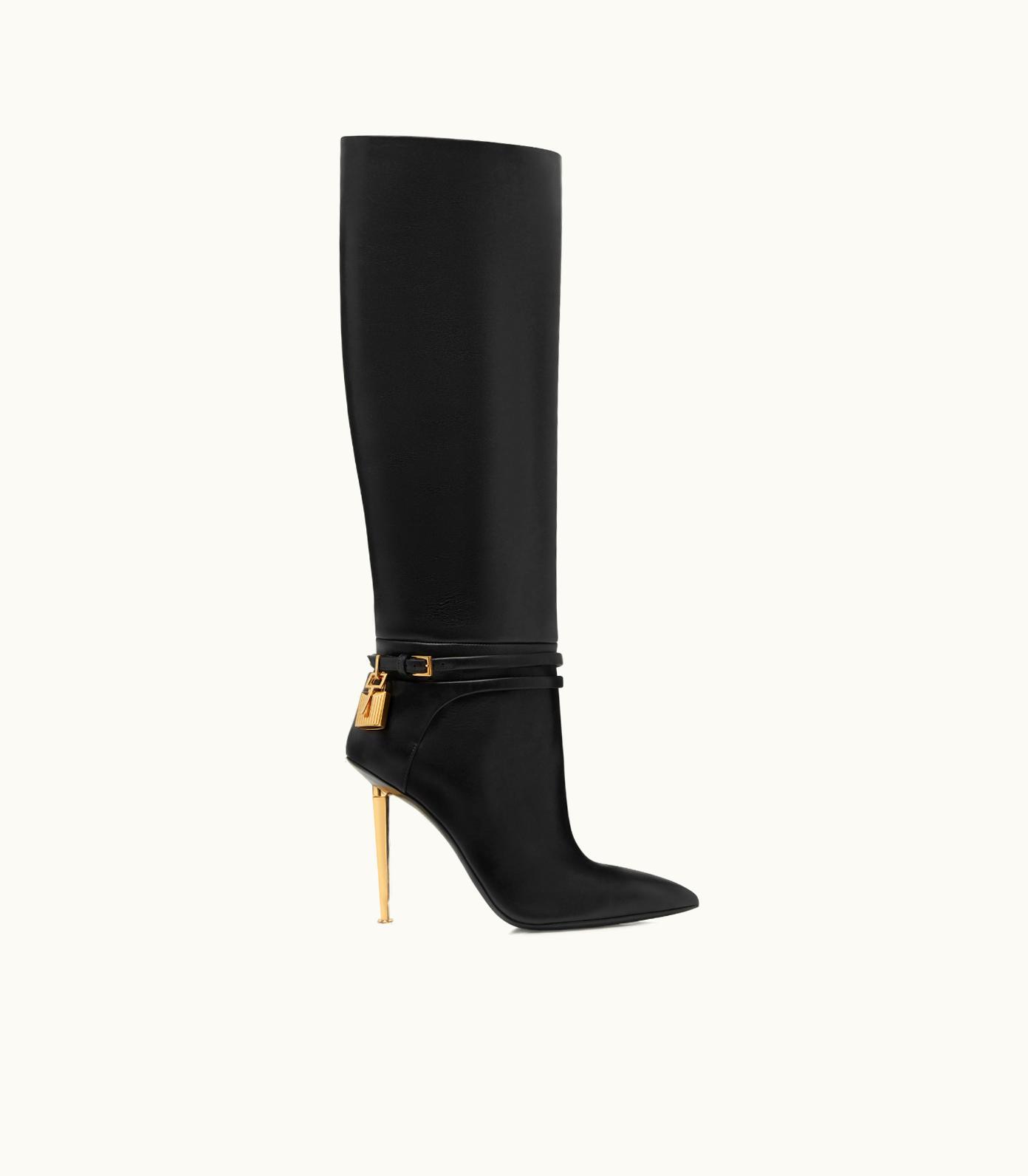 Tom Ford Pointy Toe Leather Padlock Boot 105mm Spike Heel Black | GLINT