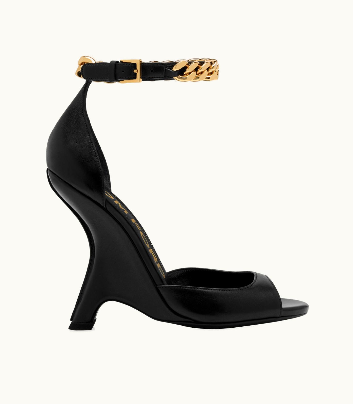 Tom Ford Sculptural Wedge Leather Sandal Black | GLINT