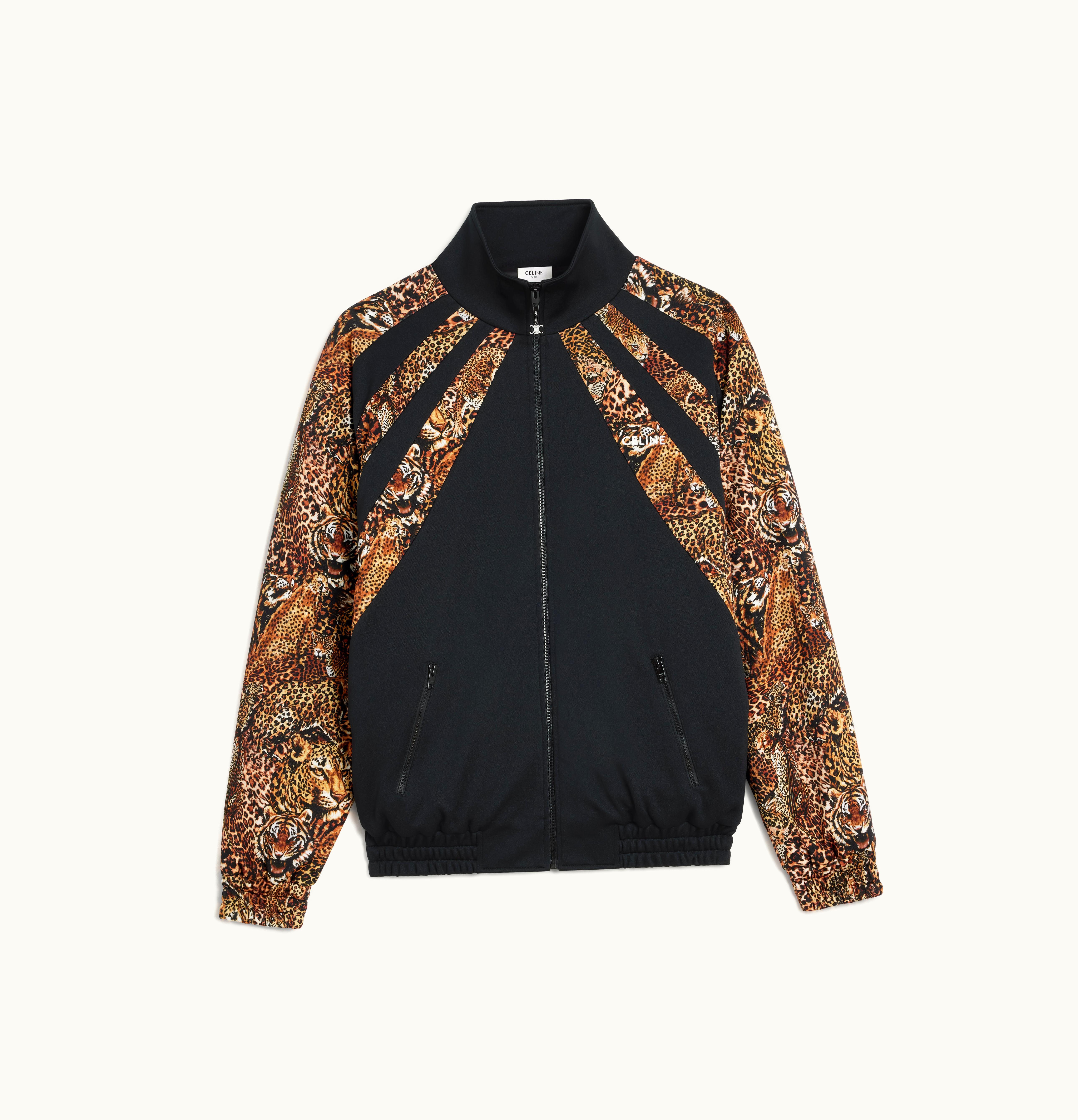 Celine Tracksuit Jacket In Double Face Jersey Black / Leopard | GLINT