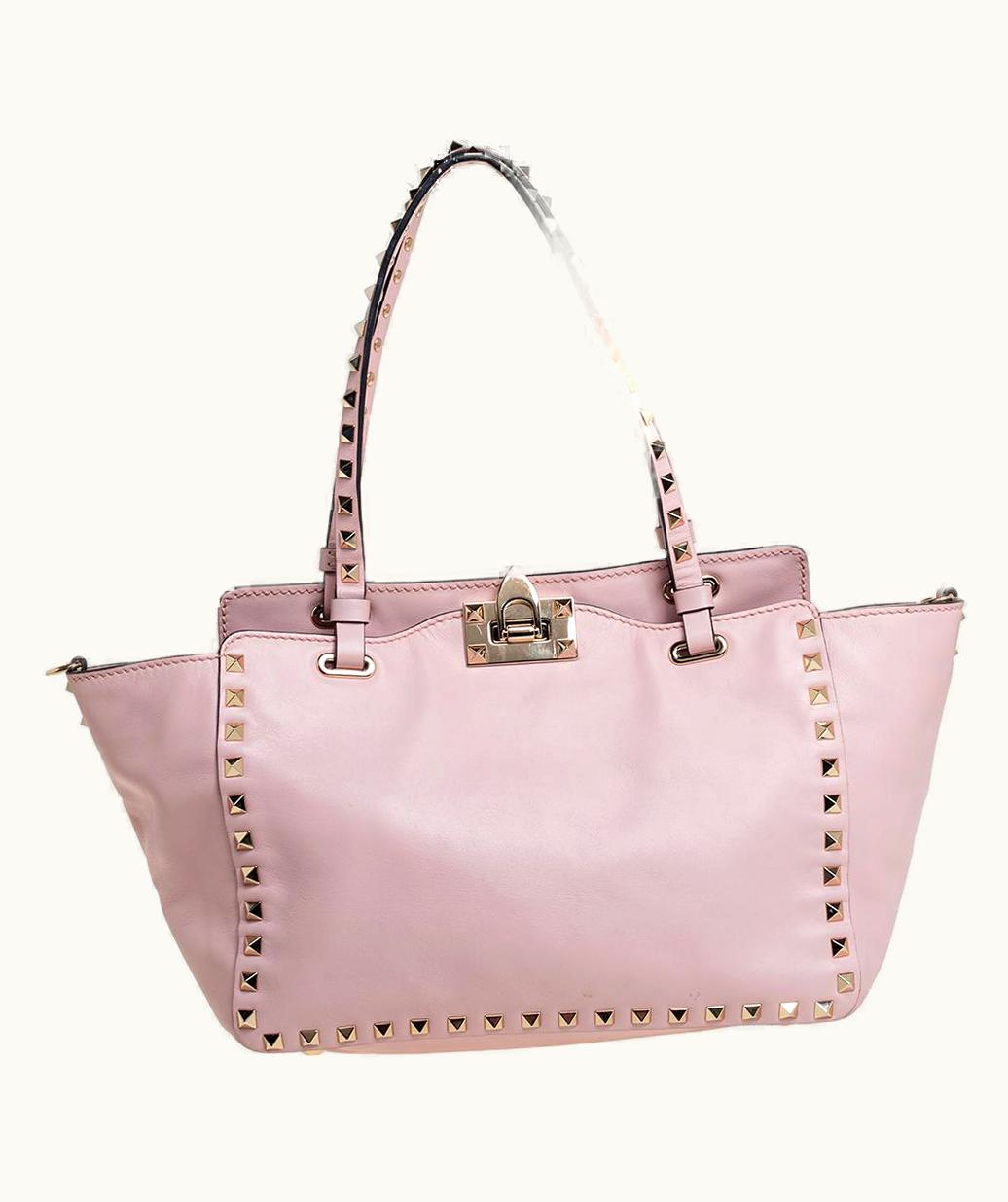 Valentino Pink Leather Small Rockstud Trapeze Tote UZ0610835 | GLINT