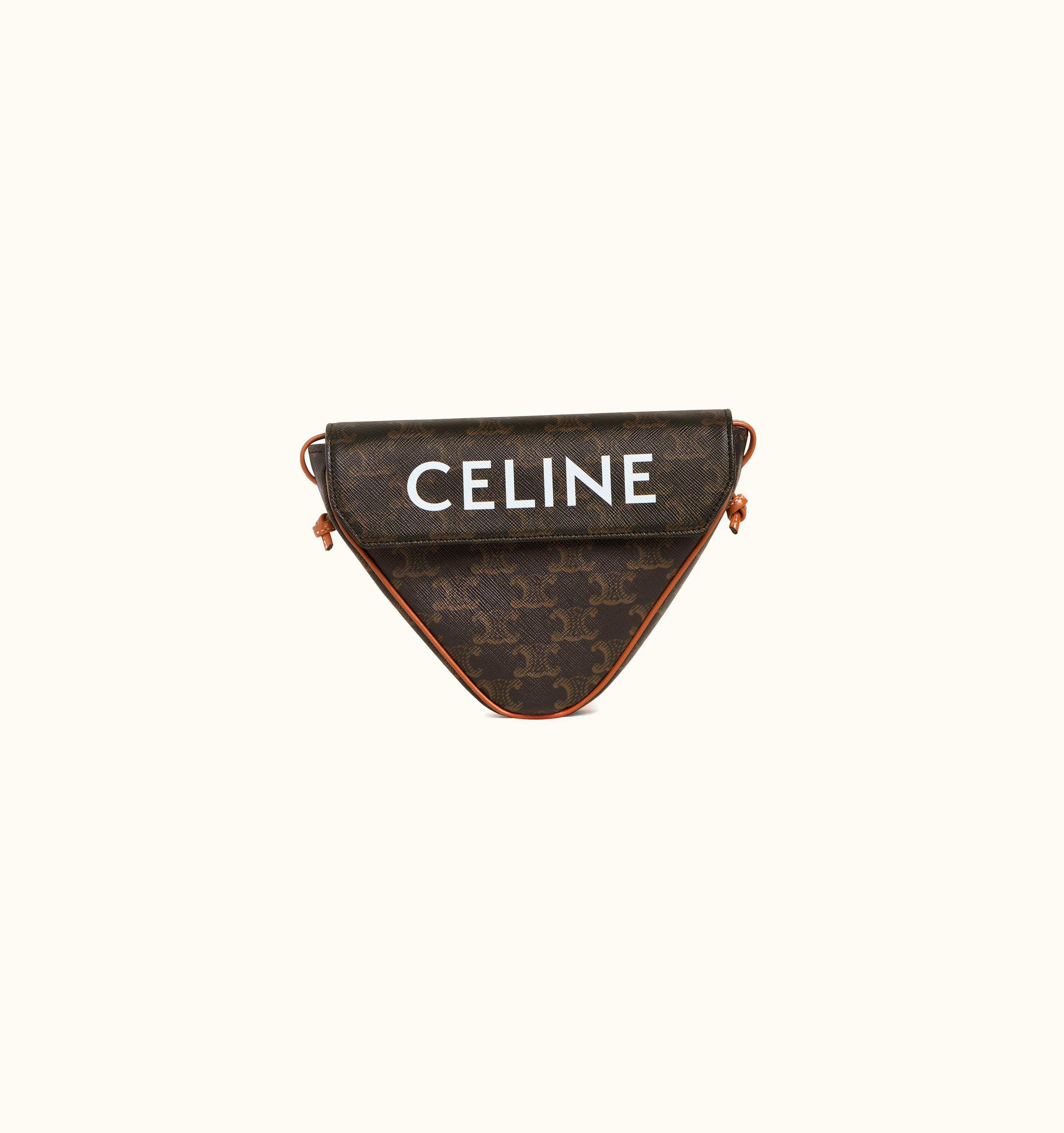 Celine Triangle Bag In Triomphe Canvas With Celine Print Tan | GLINT