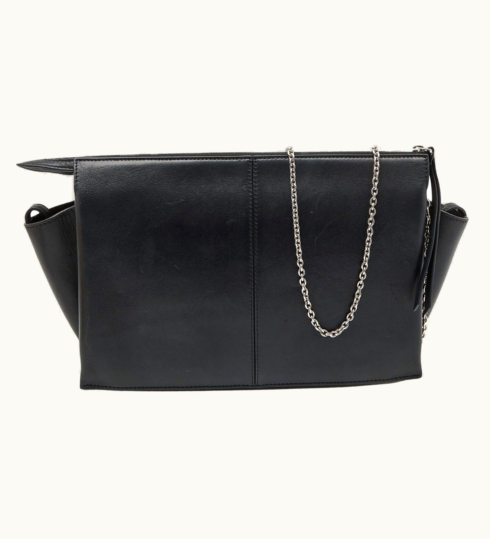 Celine Black Leather Trifold Chain Clutch | GLINT