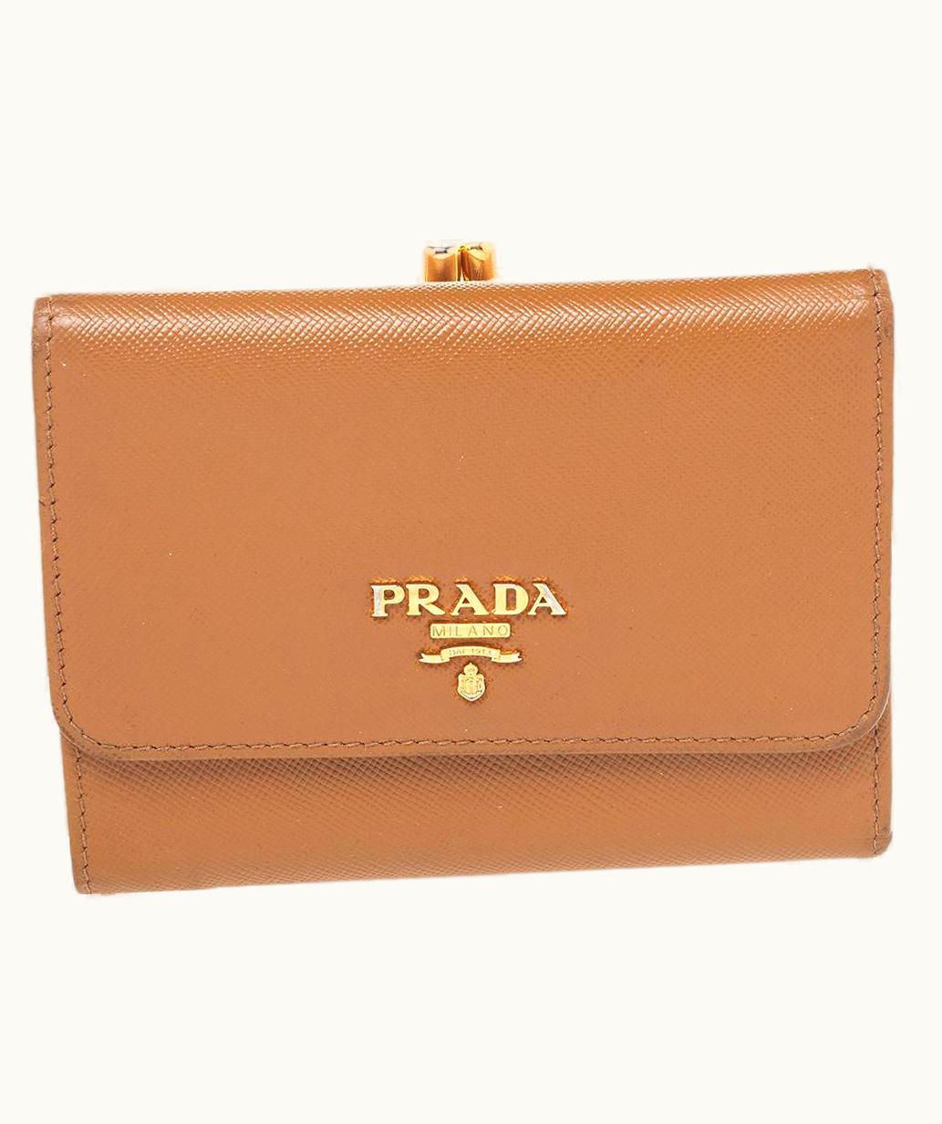 Prada Brown Saffiano Leather Trifold Wallet | GLINT