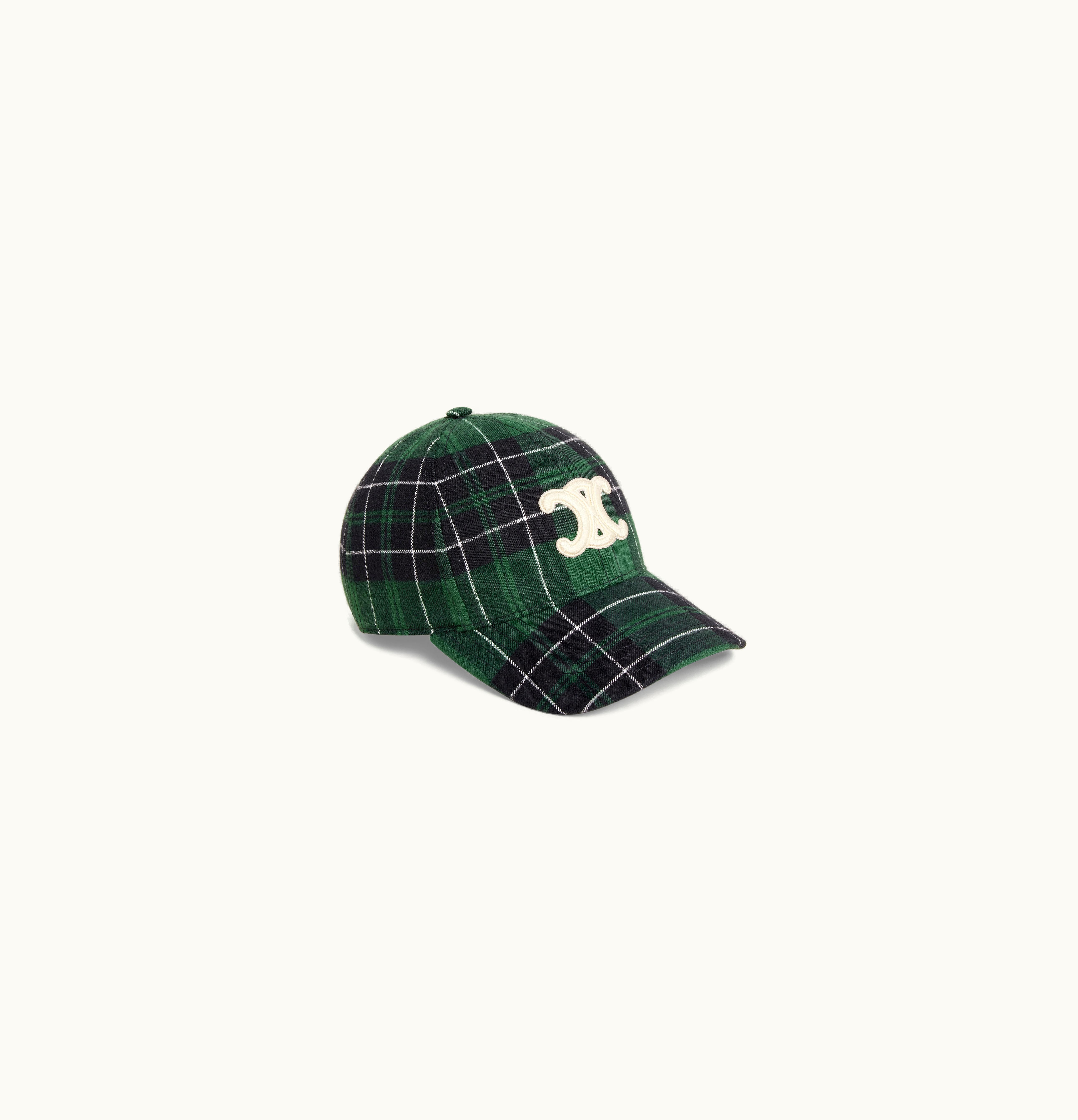 Celine Triomphe Baseball Cap In Checked Flannel Green / Black | GLINT