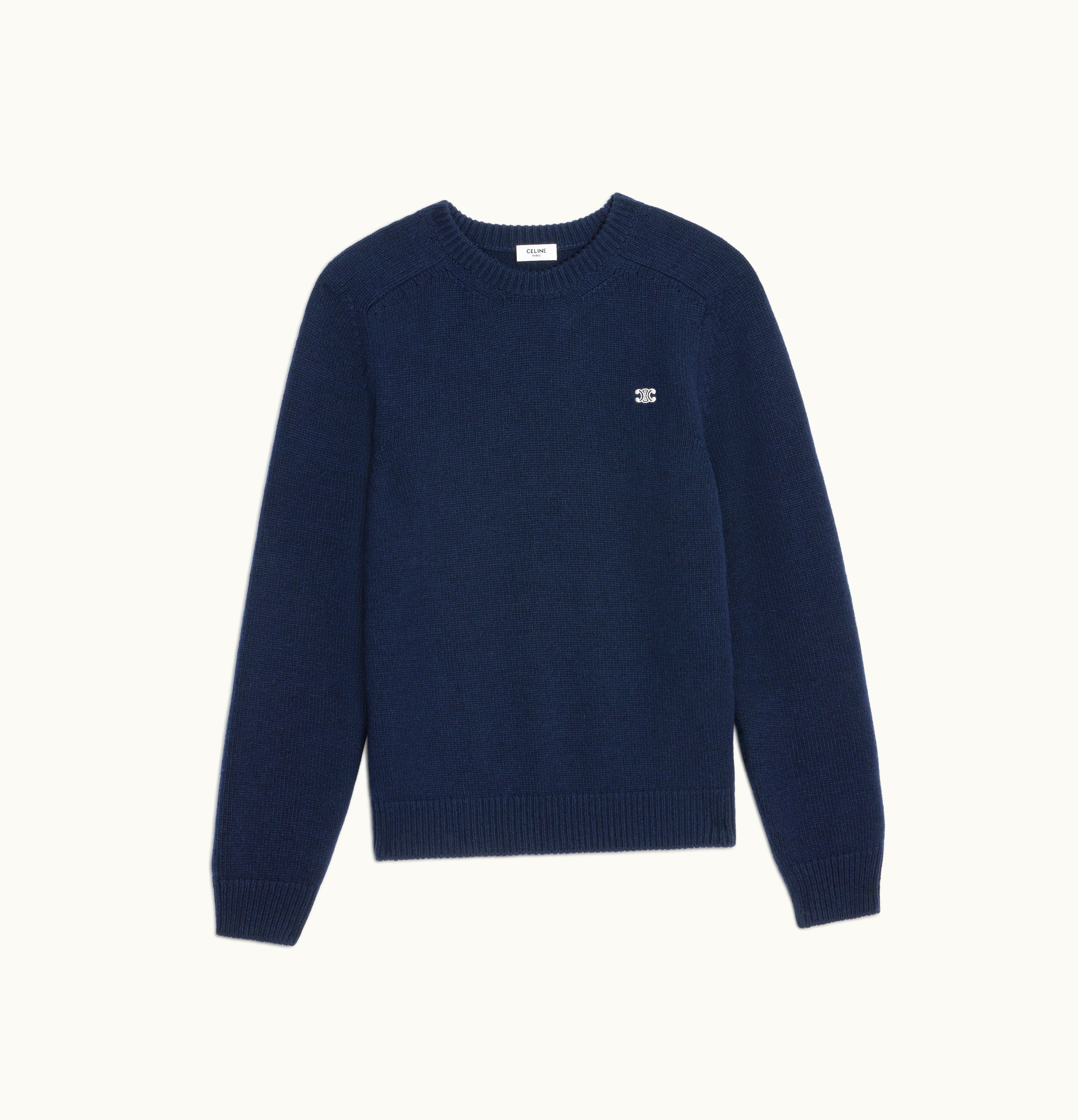 Celine Triomphe Crew Neck Sweater In Cashmere Wool Navy | GLINT