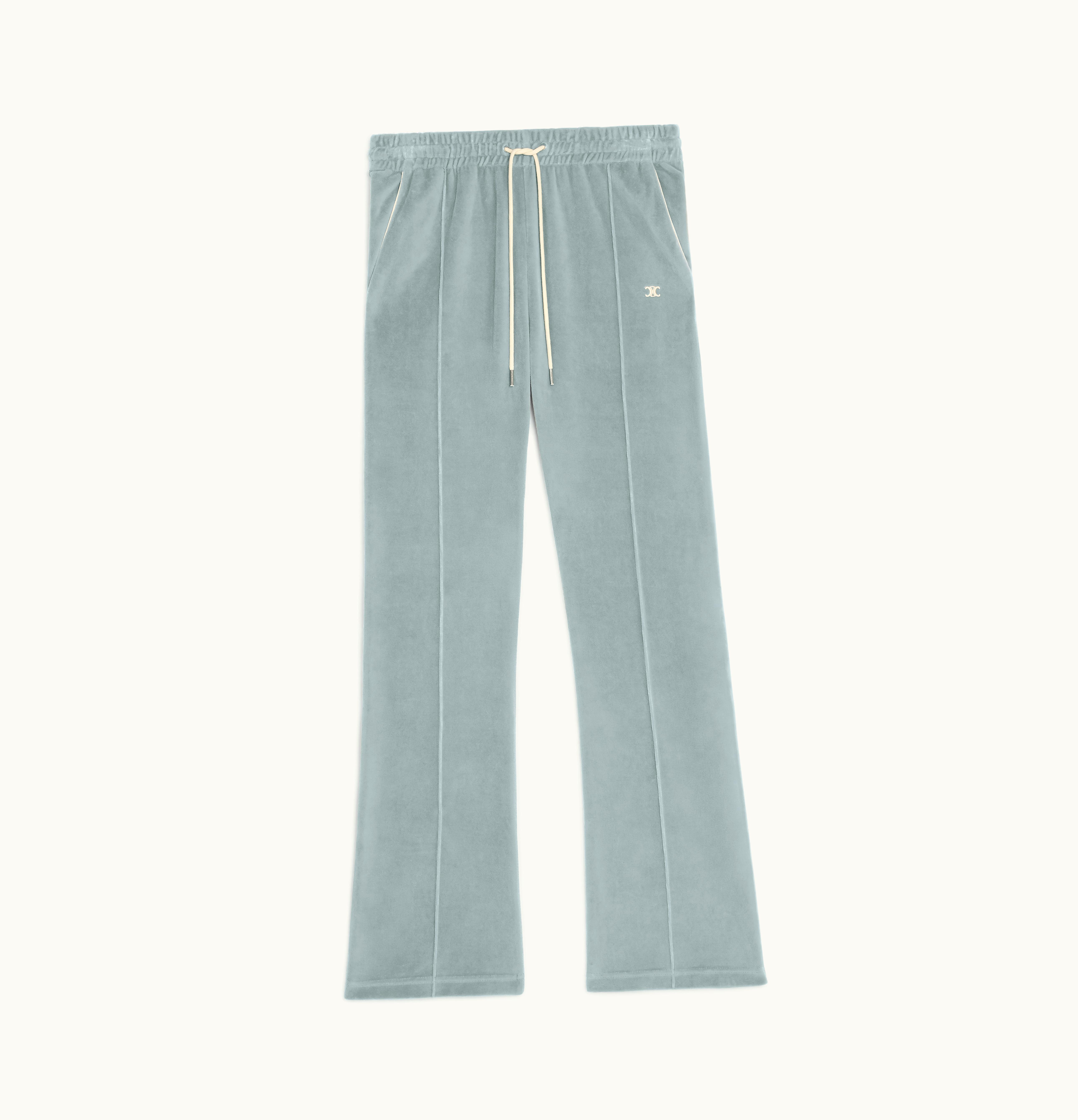Celine Triomphe Flared Track Pants In Velvet Jersey Glaise | GLINT