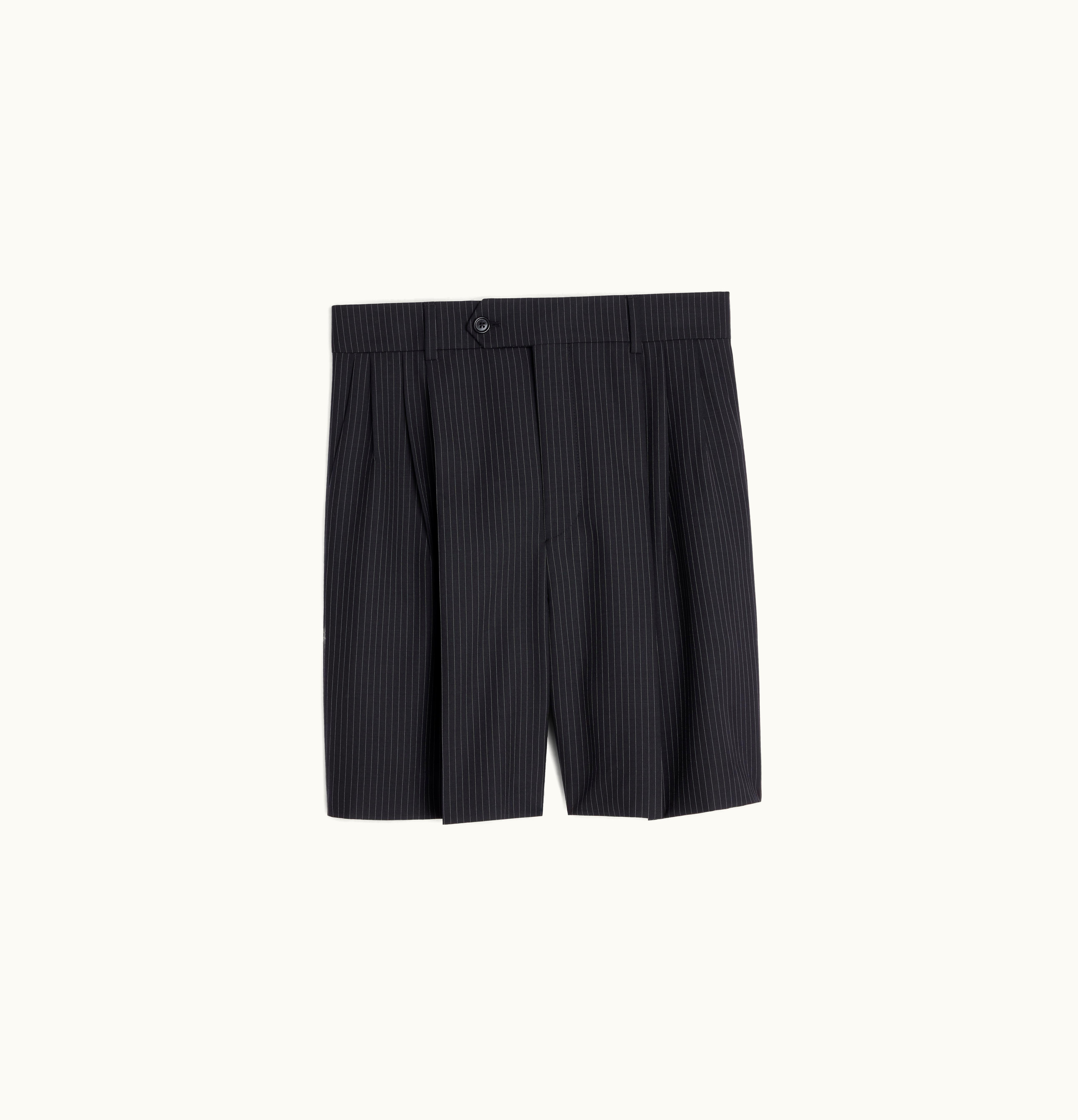 Celine Triple-Pleated Men's Shorts In Striped Wool Noir/Craie | GLINT