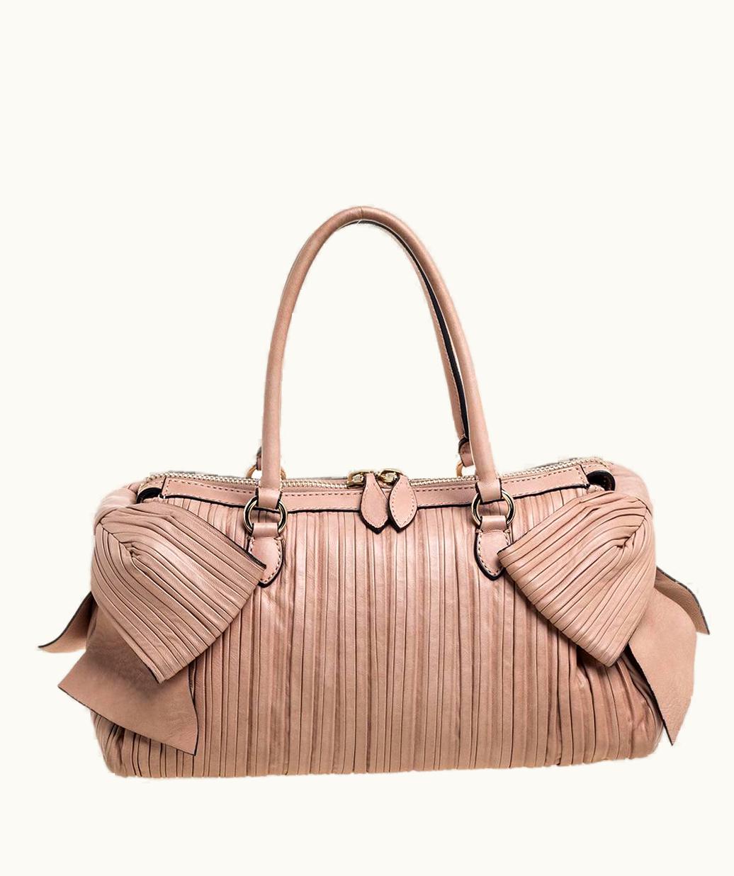 Valentino Beige Pleated Leather Side Bow Satchel UZ0610825 | GLINT