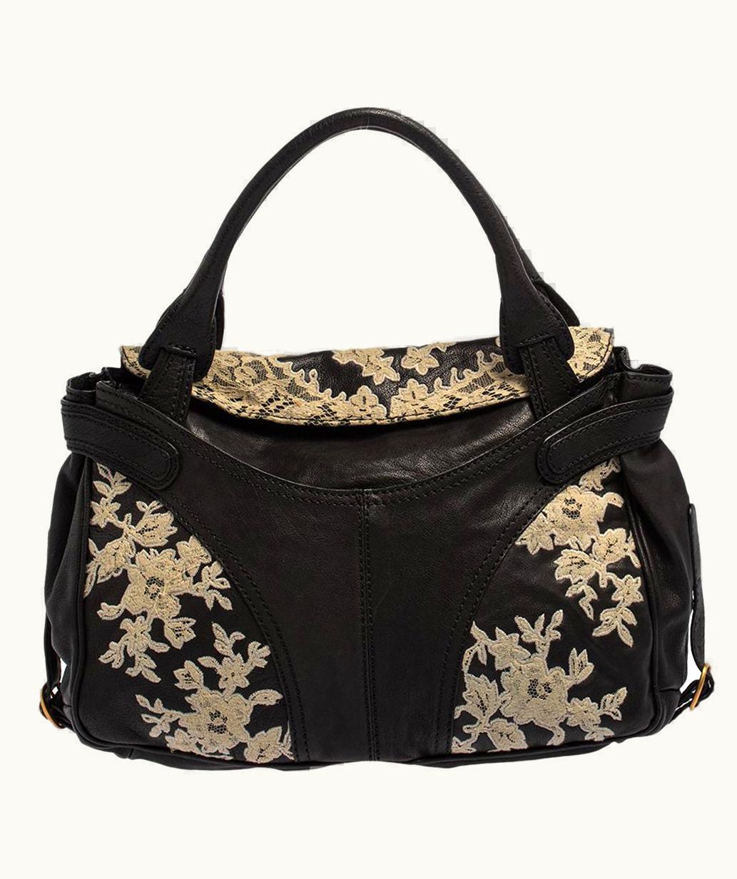 Valentino Black Flower Lace Embroidered Leather Tote UZ0610782 | GLINT