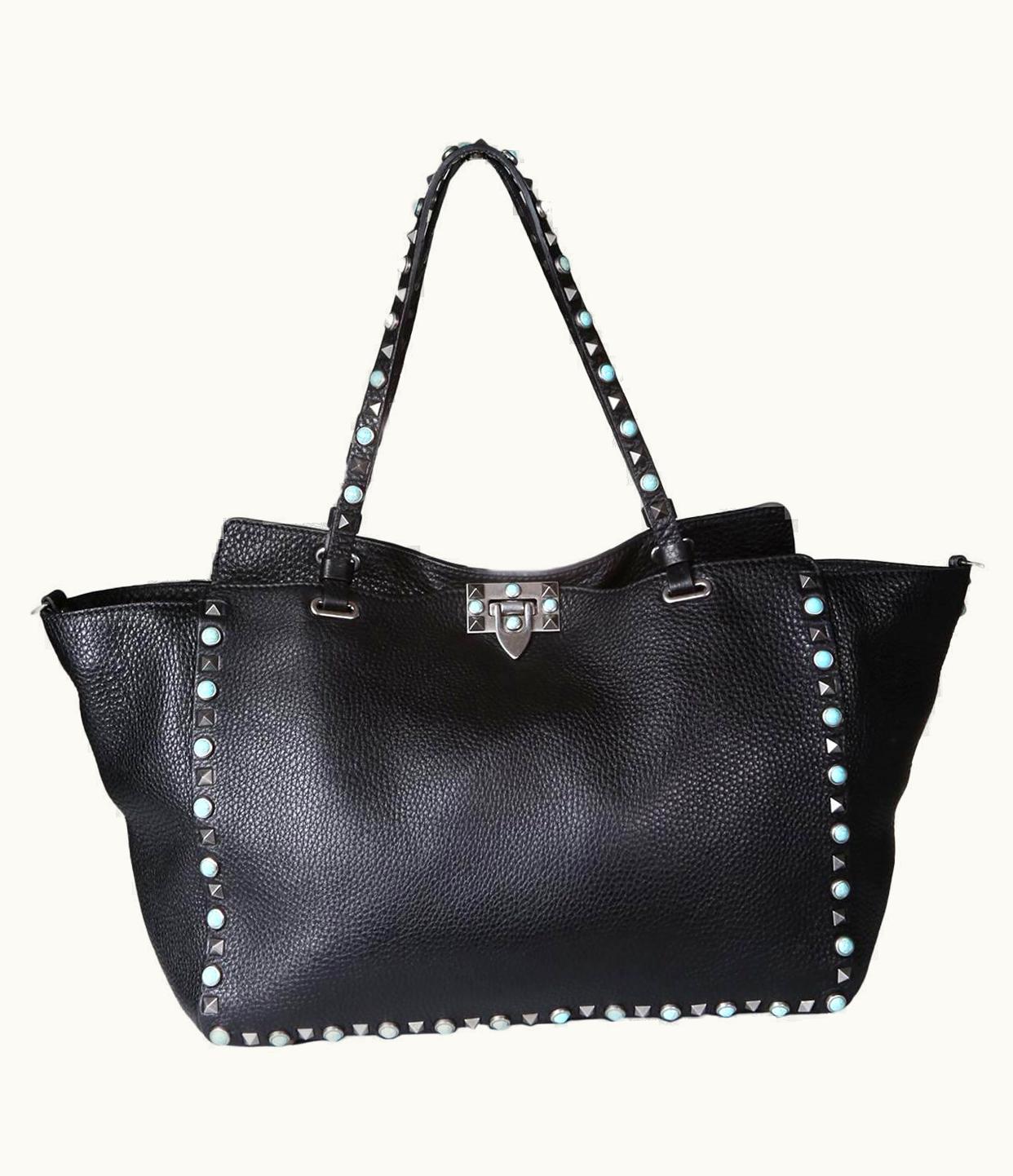 Valentino Black Leather Rockstud Tote | GLINT