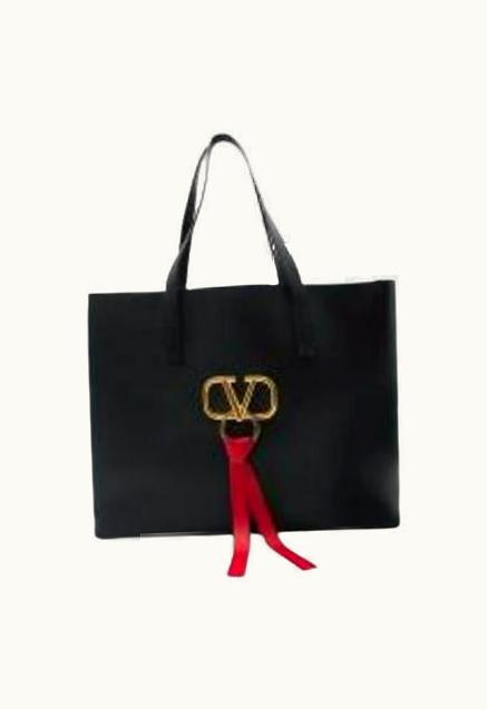 Valentino Black Leather V-Logo Tote Bag | GLINT
