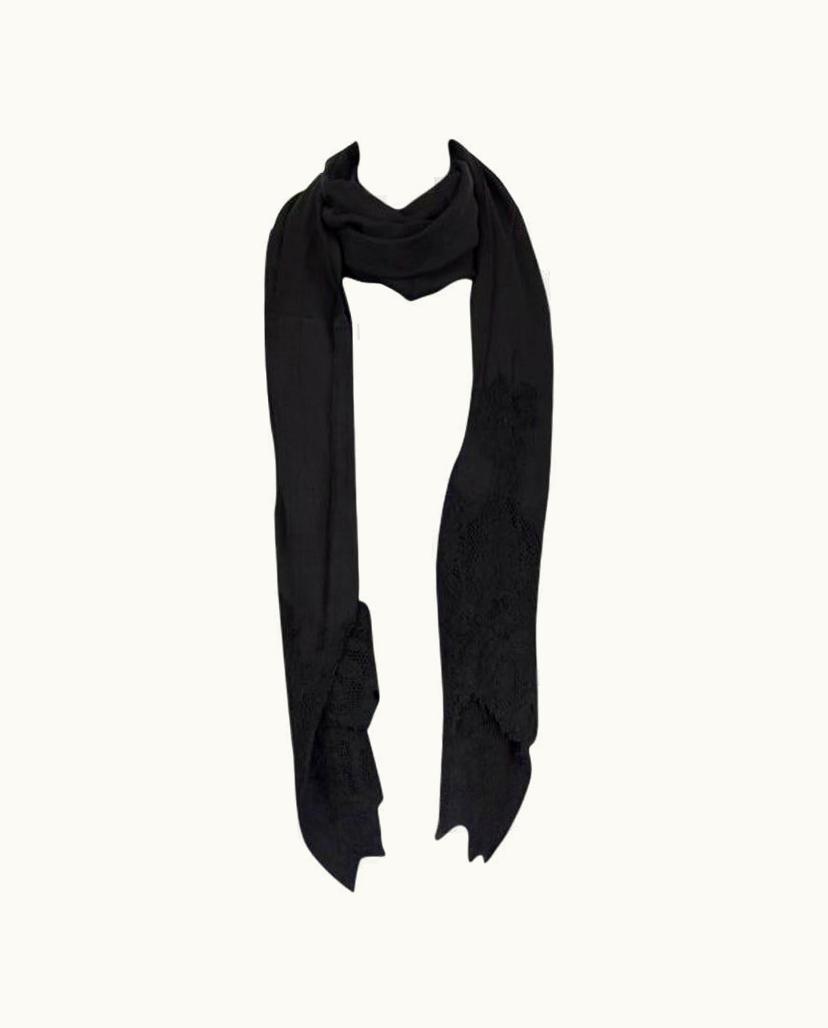 Valentino Black Silk Lace Trimmed Shawl Scarf | GLINT