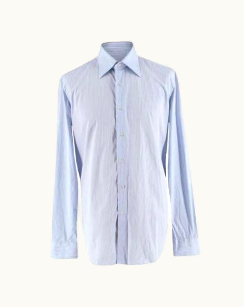 Valentino Blue Striped Cotton Long Sleeve Shirt | GLINT