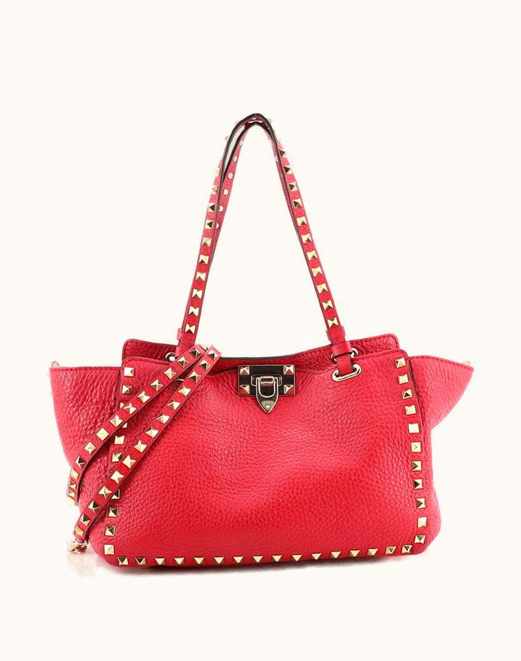 Valentino Garavani Rockstud Tote Small Pebbled Leather Pink Gold Tone | GLINT