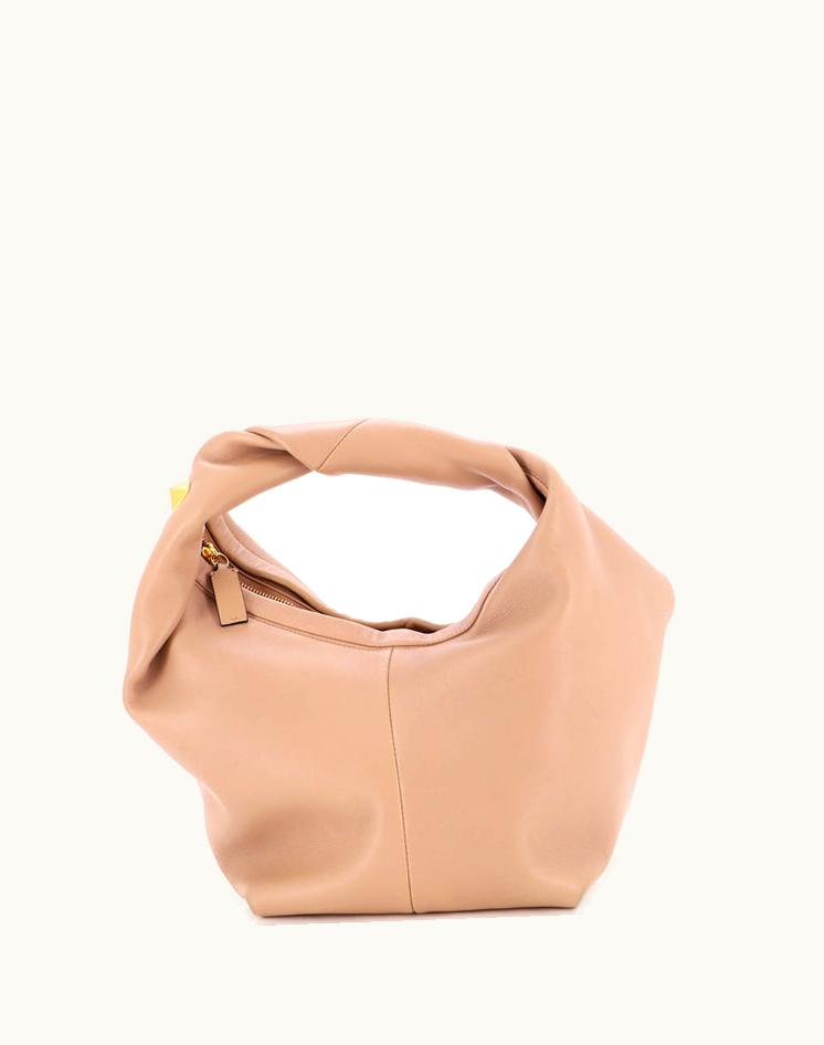 Valentino Garavani Roman Stud Small Leather Hobo Neutral Brown Gold | GLINT