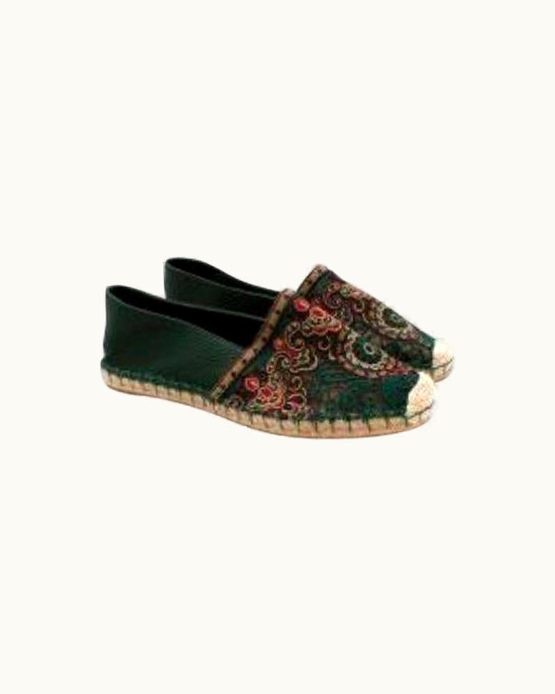 Valentino Green Leather Embroidered Espadrilles UZ0610574 | GLINT