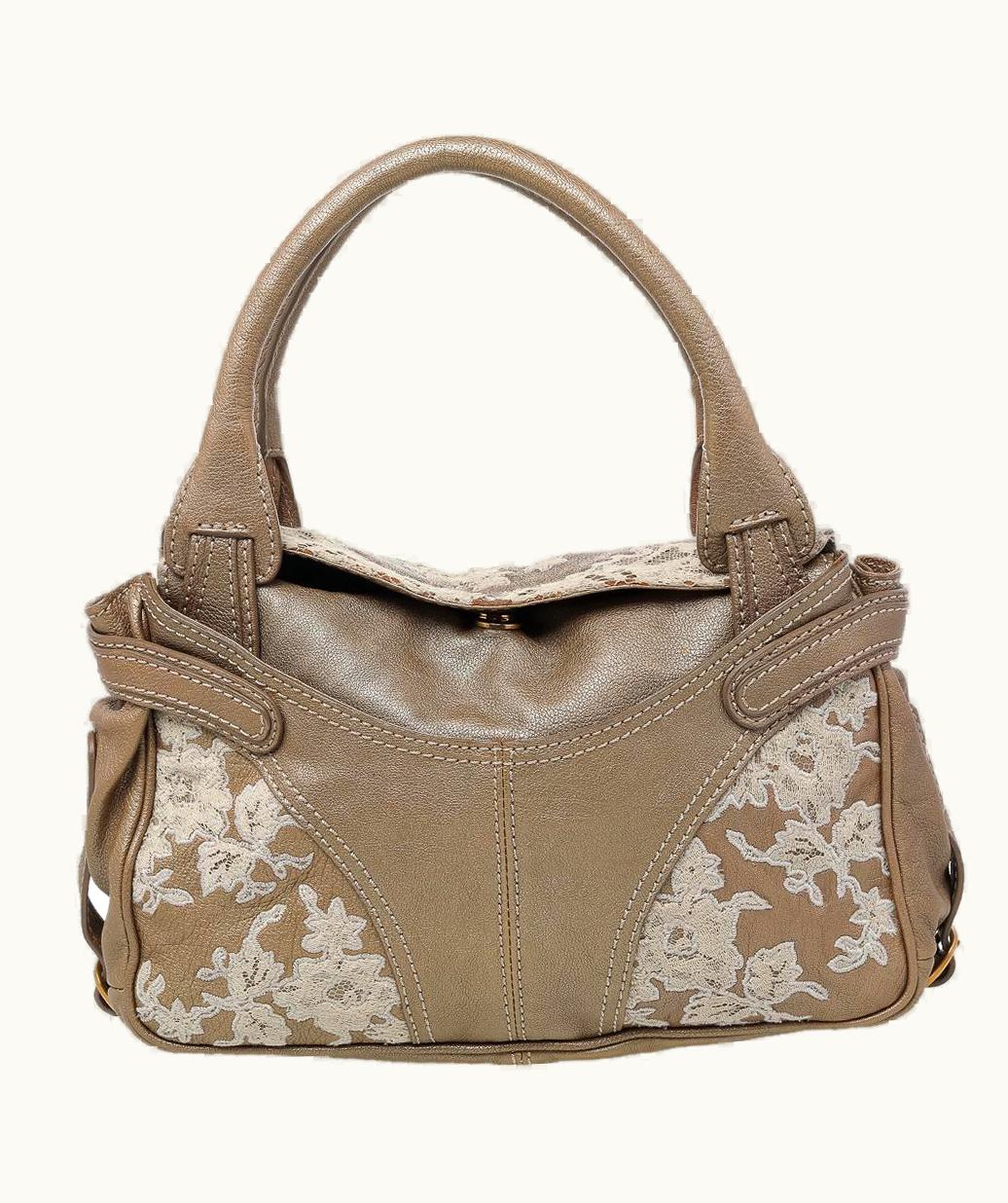 Valentino Metallic Beige Leather Urban Lace Satchel | GLINT