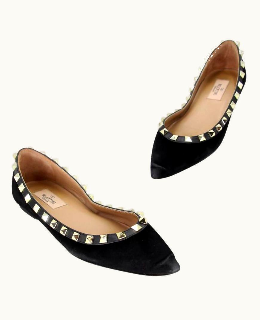 Valentino Rockstud 37.5 Suede Pointy Flats VL-0922p-0001 | GLINT