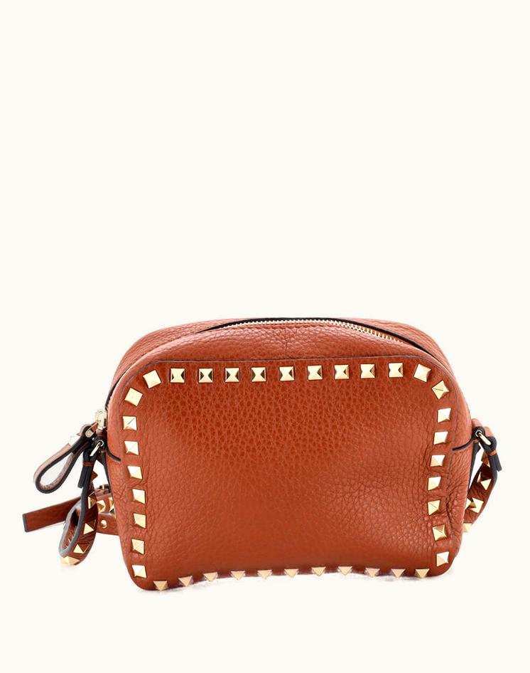 Valentino Rockstud Camera Crossbody Bag Leather Brown | GLINT