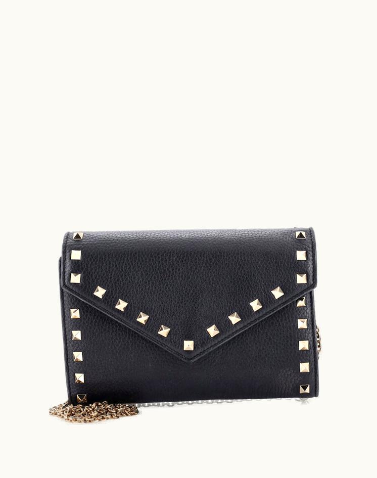 Valentino Rockstud Envelope Chain Crossbody Bag Leather Small in Black | GLINT