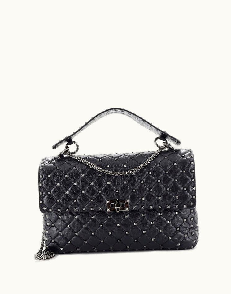 Valentino Rockstud Spike Flap Bag Quilted Leather Large Black | GLINT