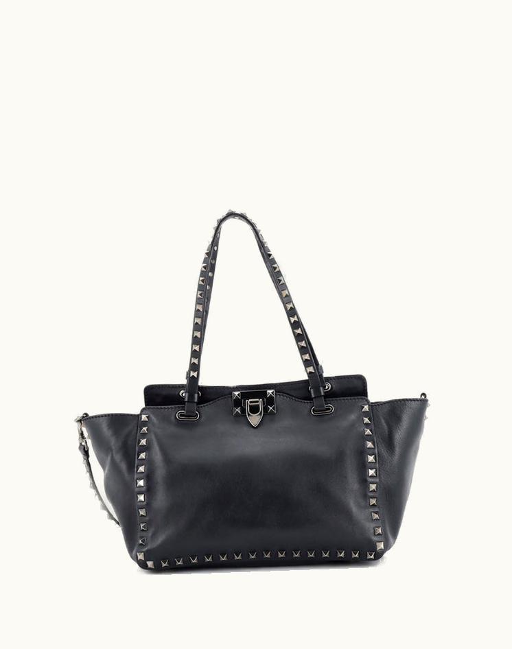 Valentino Rockstud Tote Soft Leather Small Black Gun Metal | GLINT