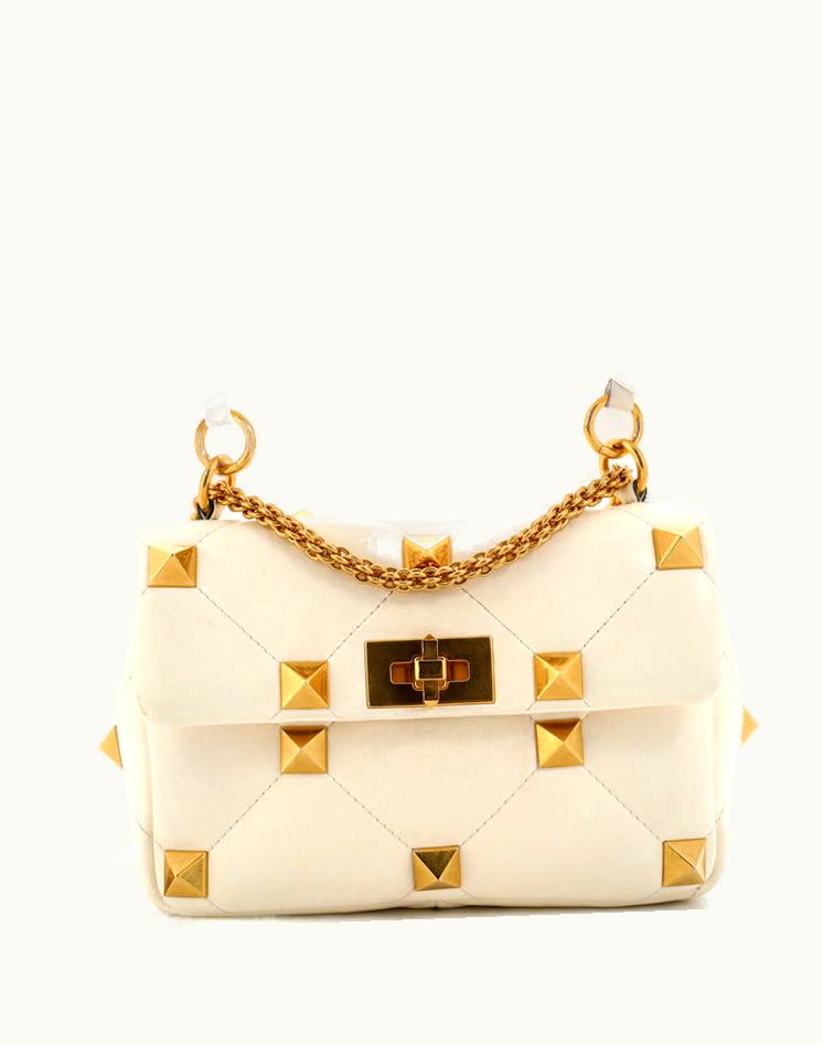 Valentino Roman Stud Flap Bag Quilted Leather Medium in Neutral Gray | GLINT