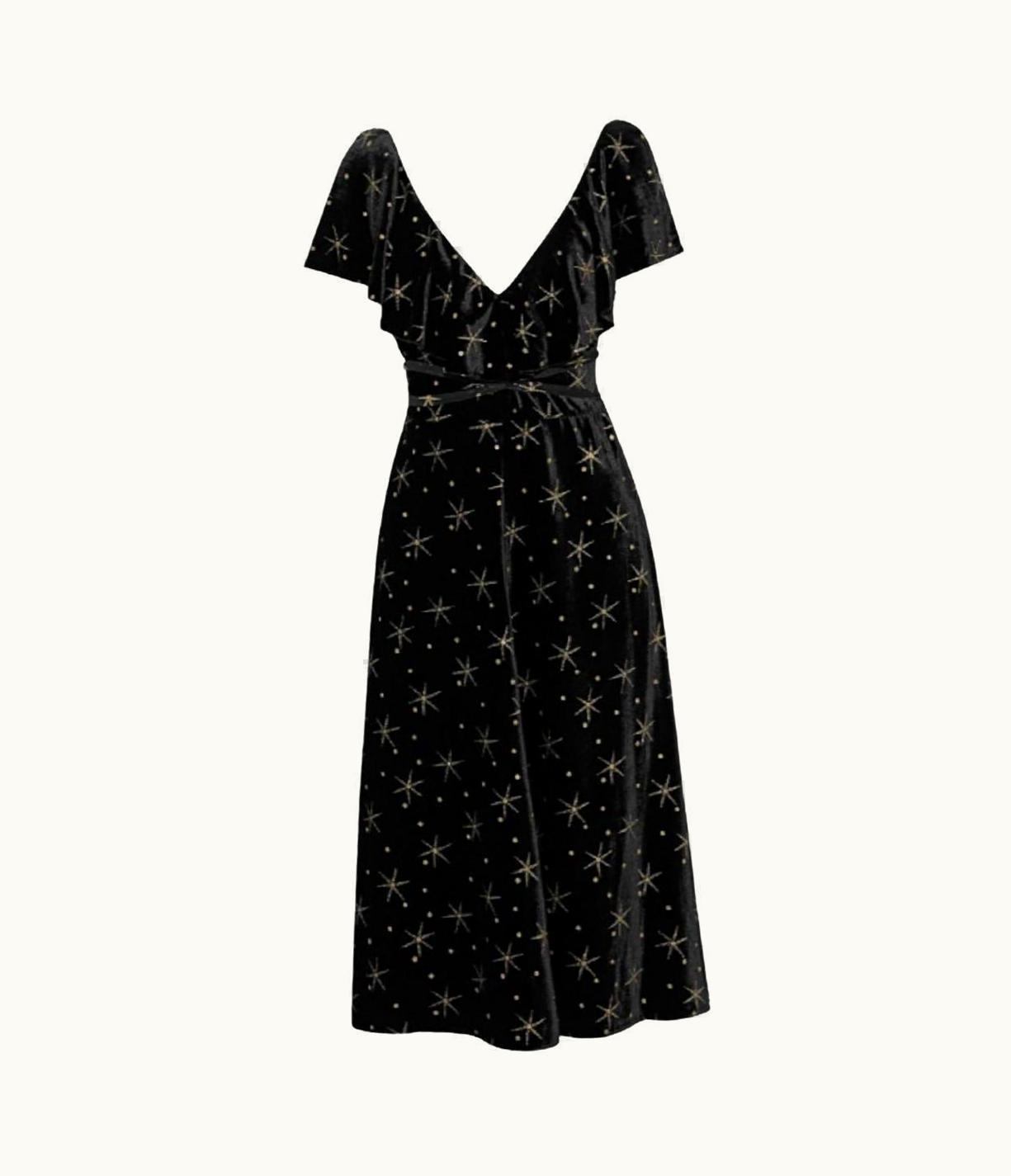 Valentino Star Embroidered Velvet Flare Midi Dress | GLINT