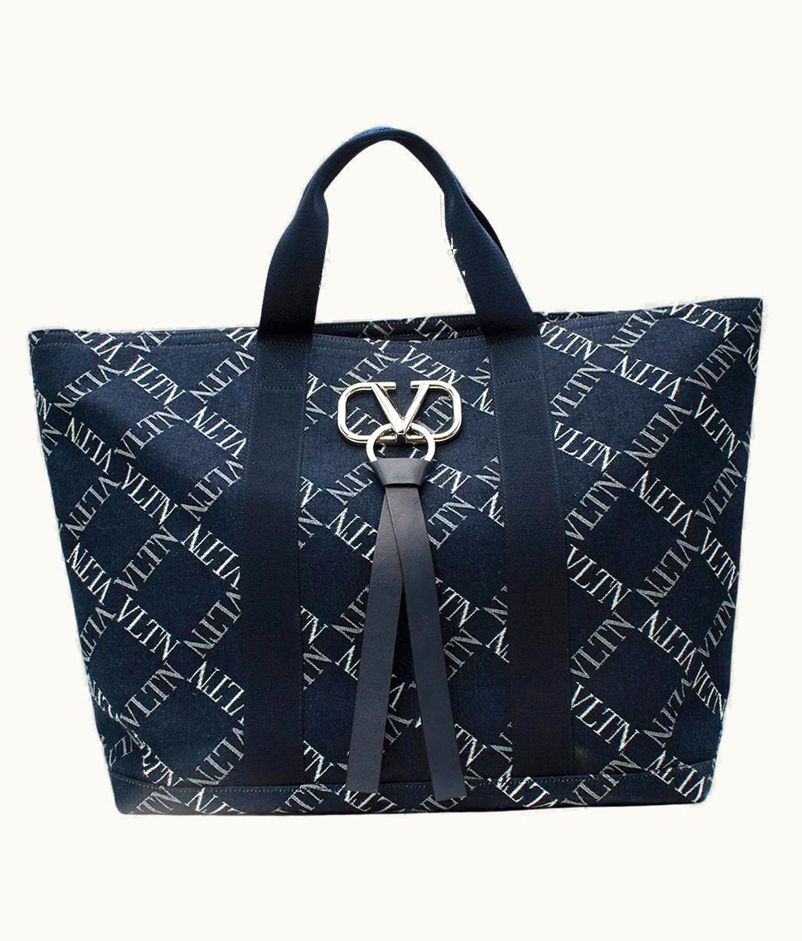 Valentino V-Ring Vltn Indigo Denim Tote Bag | GLINT
