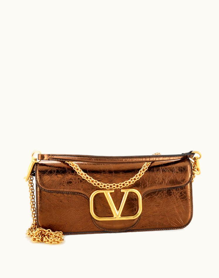 Valentino VLogo Loco Flap Shoulder Bag Leather Medium in Brown & Gold | GLINT