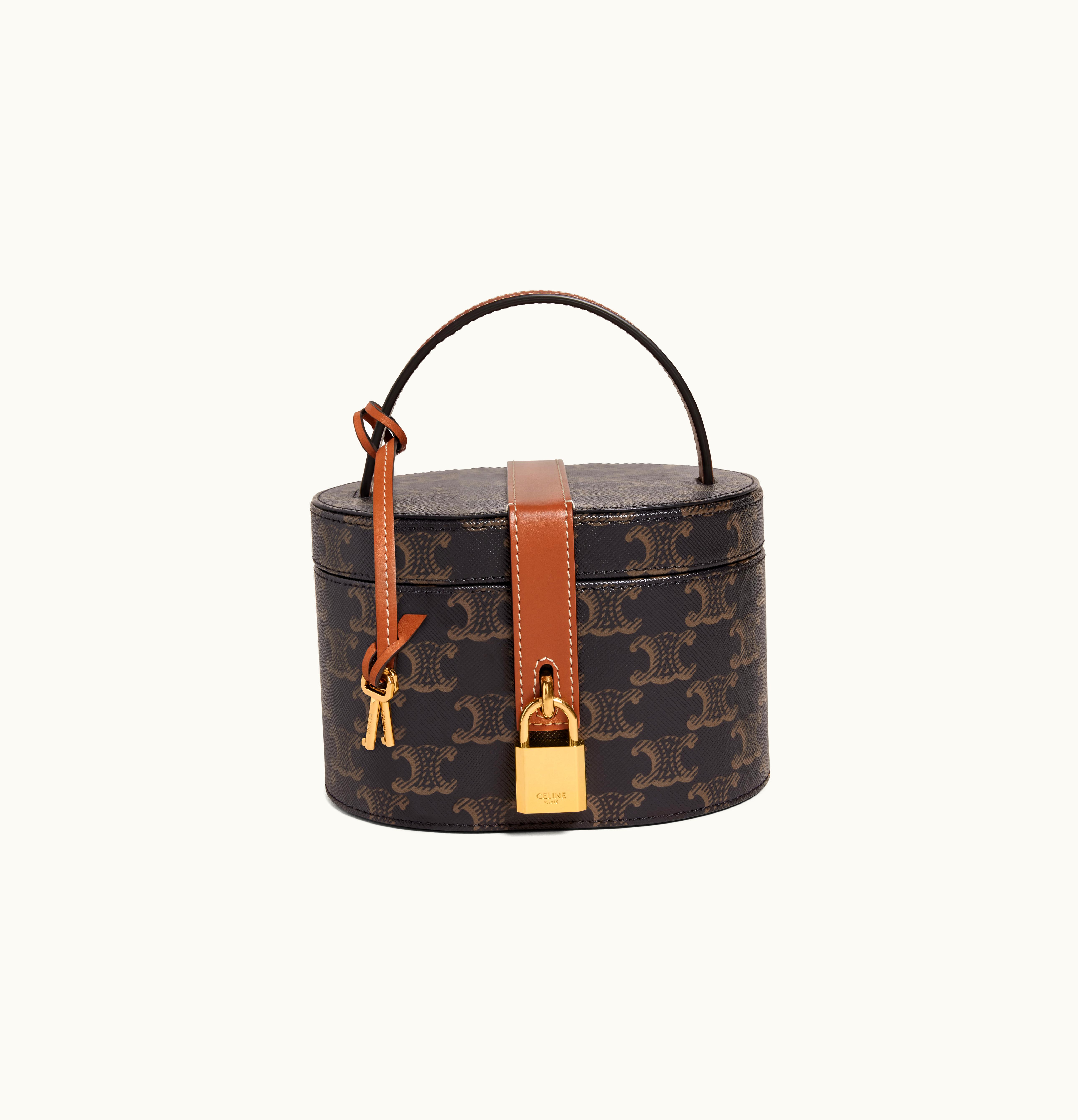 Celine Vanity Case In Triomphe Canvas And Calfskin Tan | GLINT
