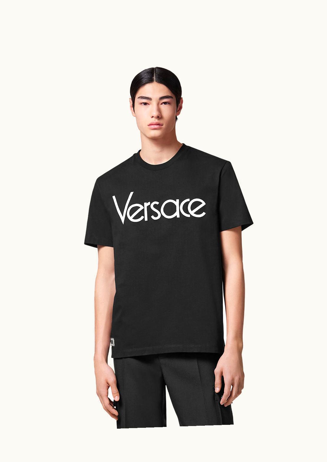 Versace 1978 Re-Edition Logo Embroidered Cotton T-Shirt Black | GLINT