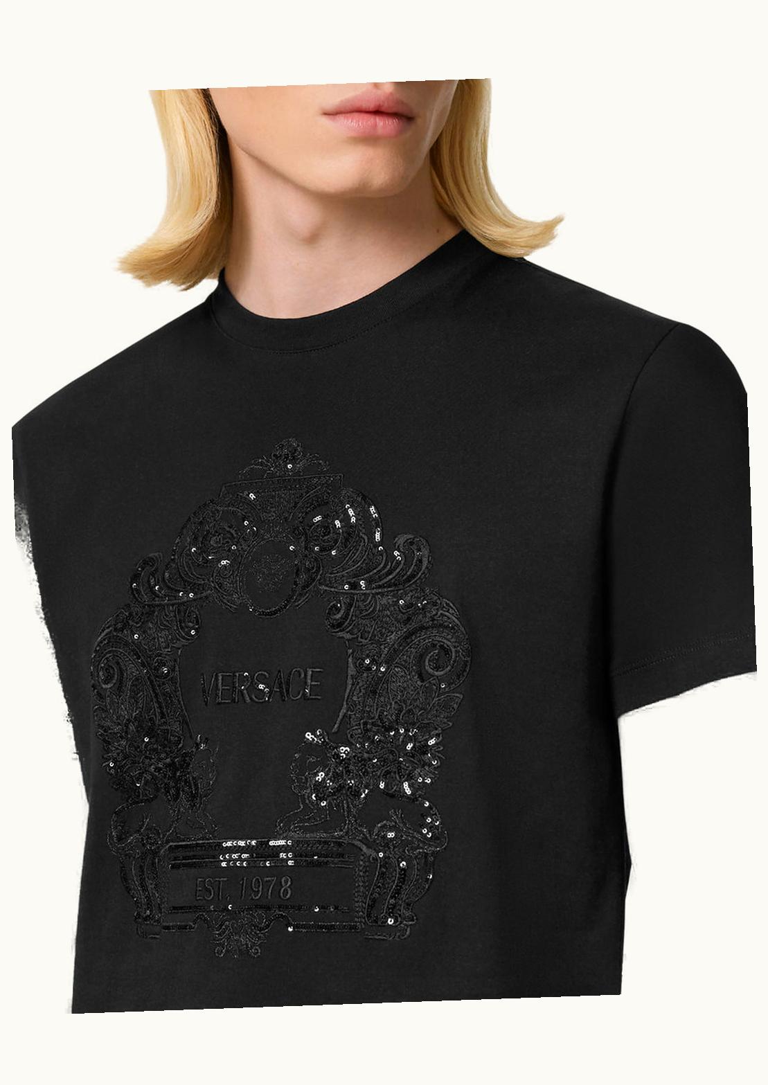 Versace Cartouche Paillette Embellished T-Shirt Black | GLINT