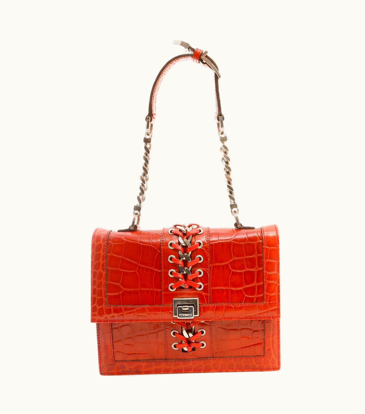 Versace Red Embossed Croc Evening Bag | GLINT