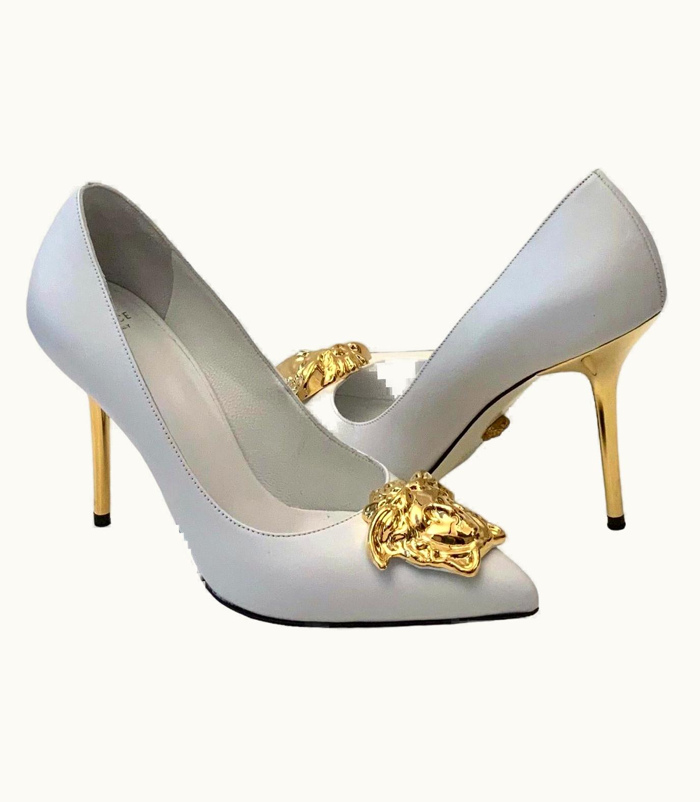 Versace White Leather Medusa Pumps | GLINT