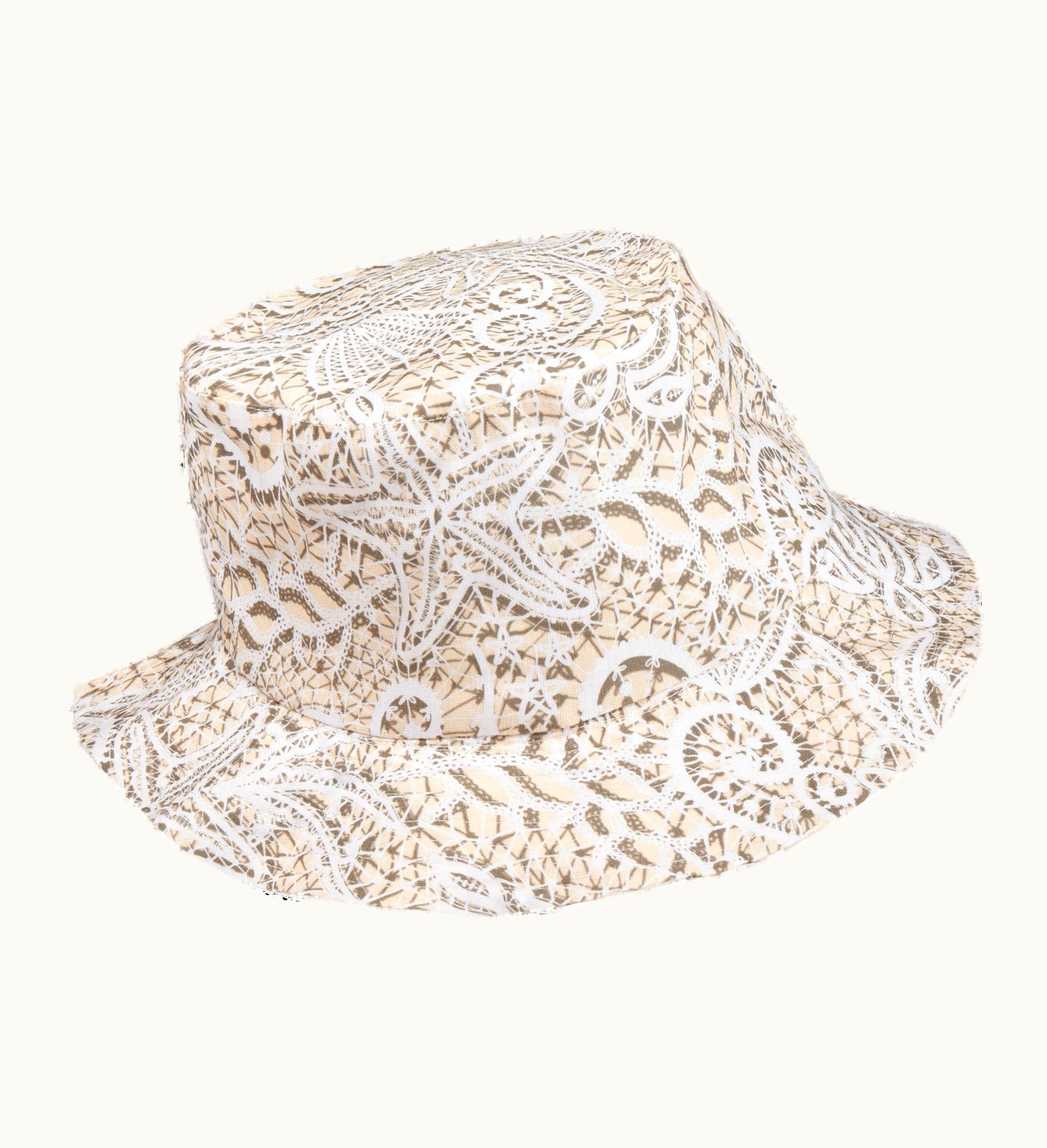 This hat is all about lace, and not just any lace. The graceful silhouettes of undersea animals are intertwined in the stitches of this Dentelles printed bucket hat, for a new romantic take on a traditional art.Printed Bucket HatVilebrequin LabelWomen HatWomen Hat Dentelles54% Hemp - 46% Tencel