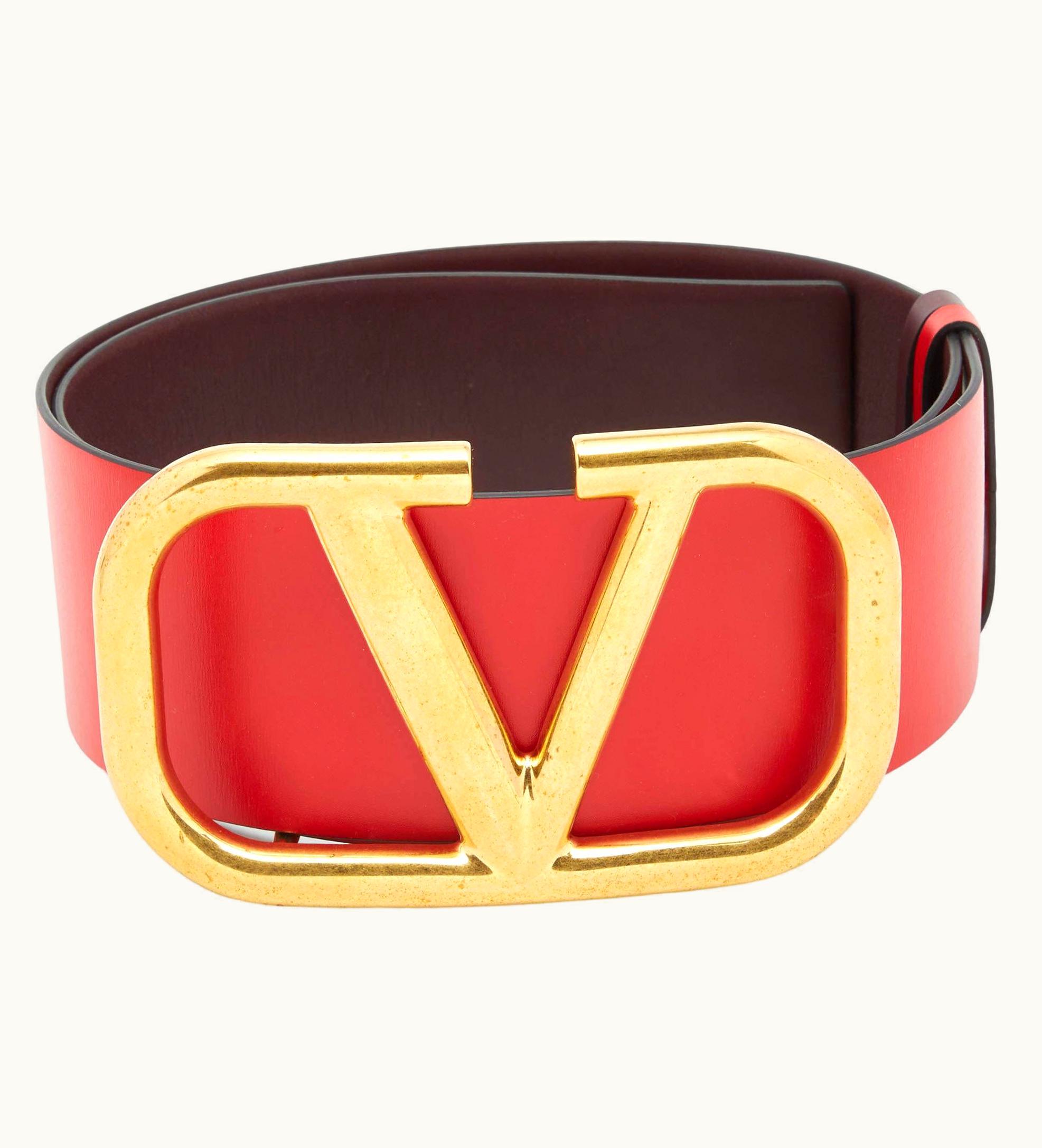 Valentino Red/Burgundy Leather VLogo Reversible Belt 75cm | GLINT