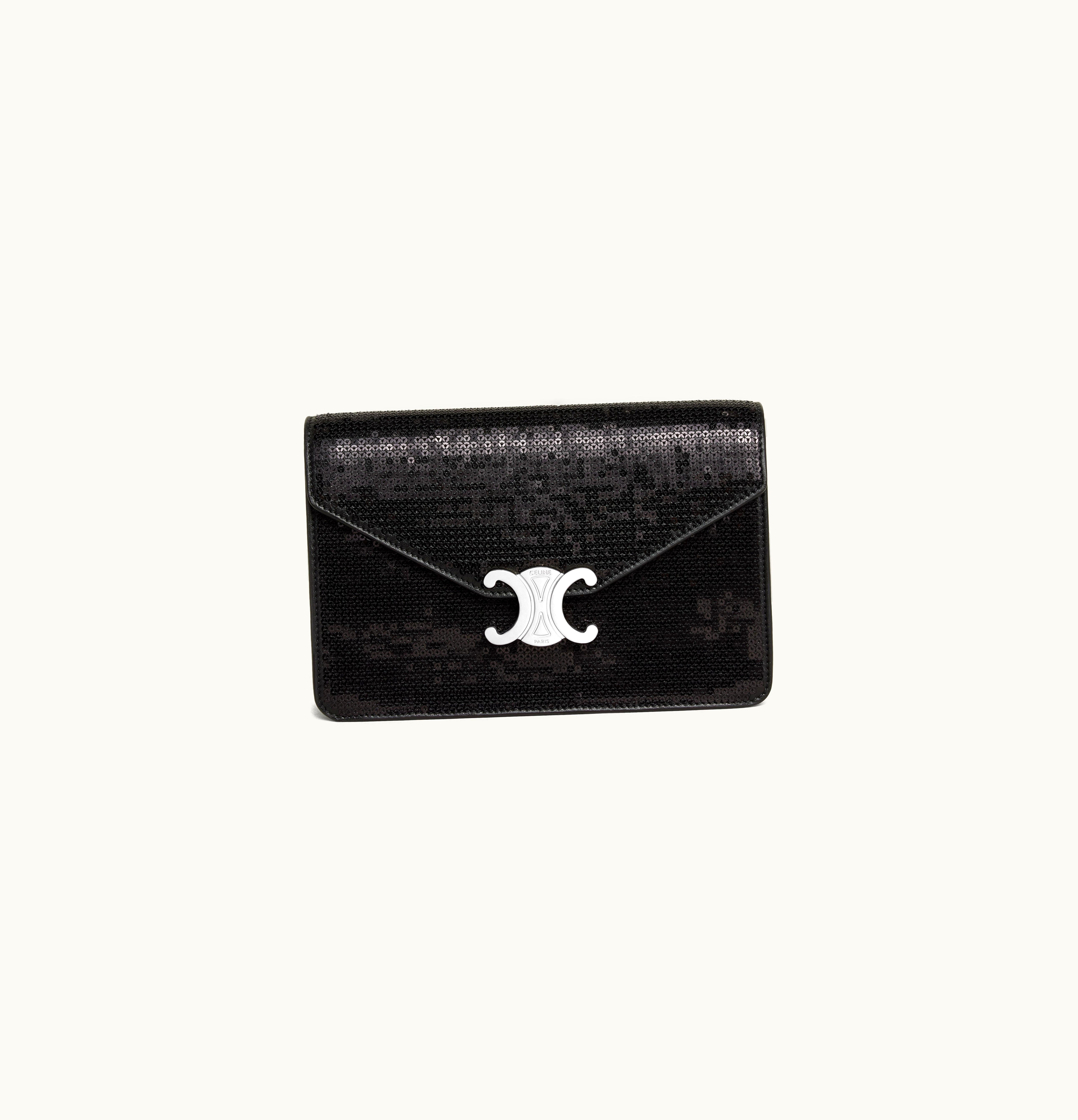Celine Wallet On Chain Triomphe In Sequins And Calfskin Black | GLINT