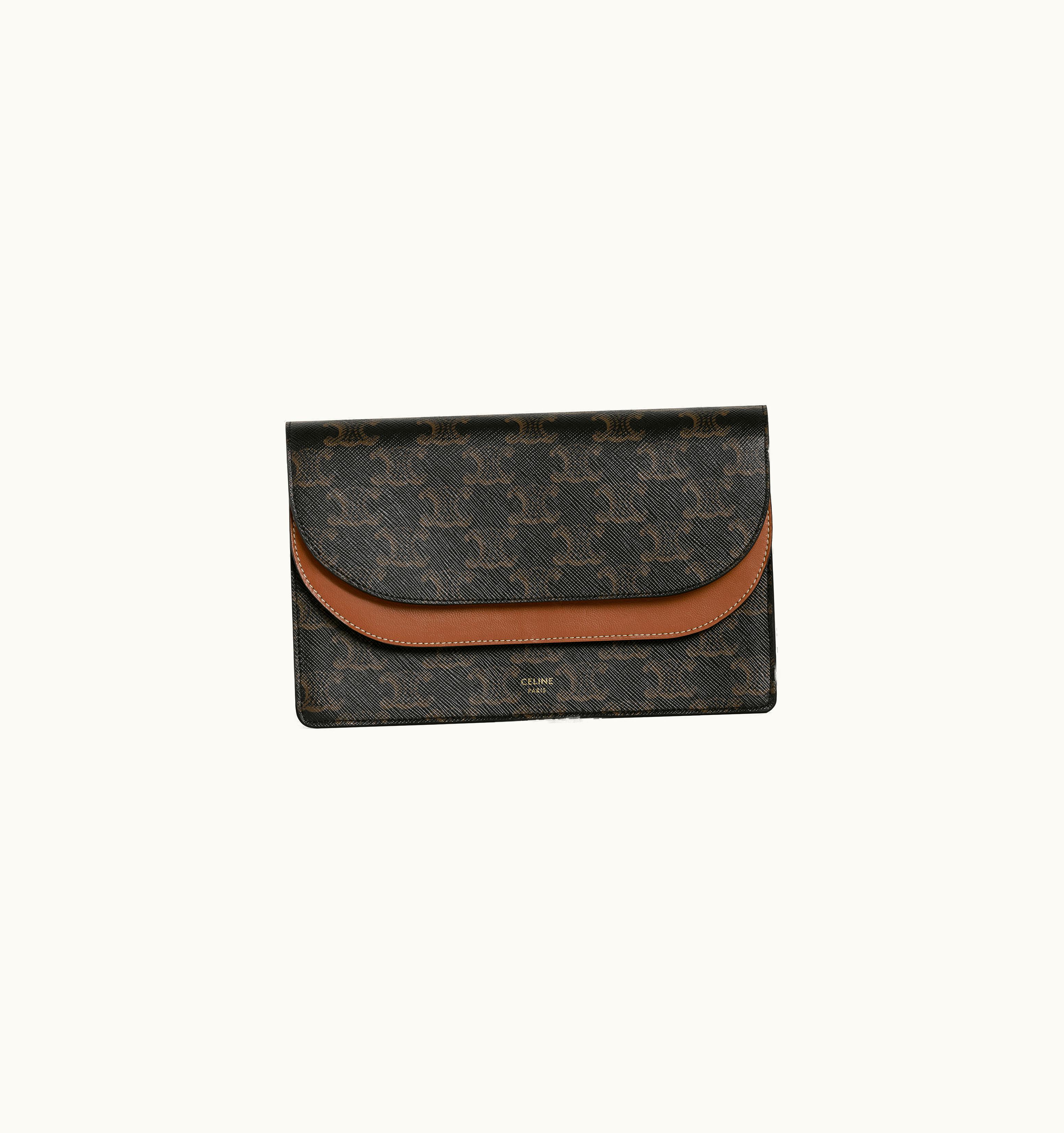 Celine Wallet On Strap In Triomphe Canvas And Smooth Lambskin Tan | GLINT