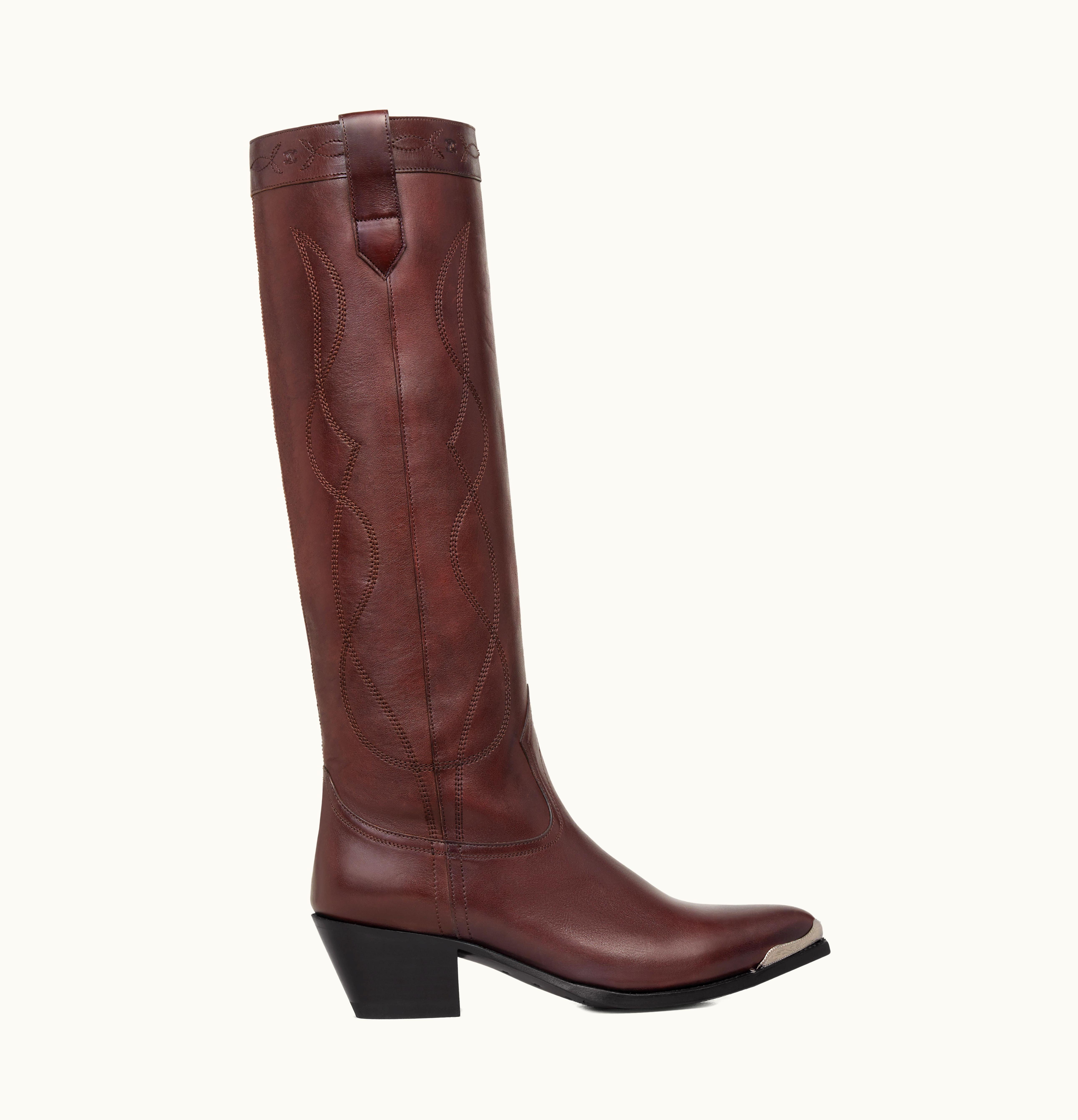 Celine Western Boots High Boot With Metal Toe In Calfskin Dark Burgundy | GLINT