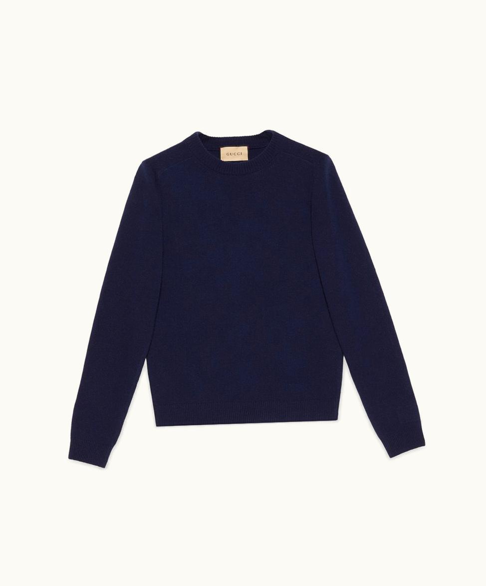 Wool Jumper With Gucci Patch Blue | GLINT