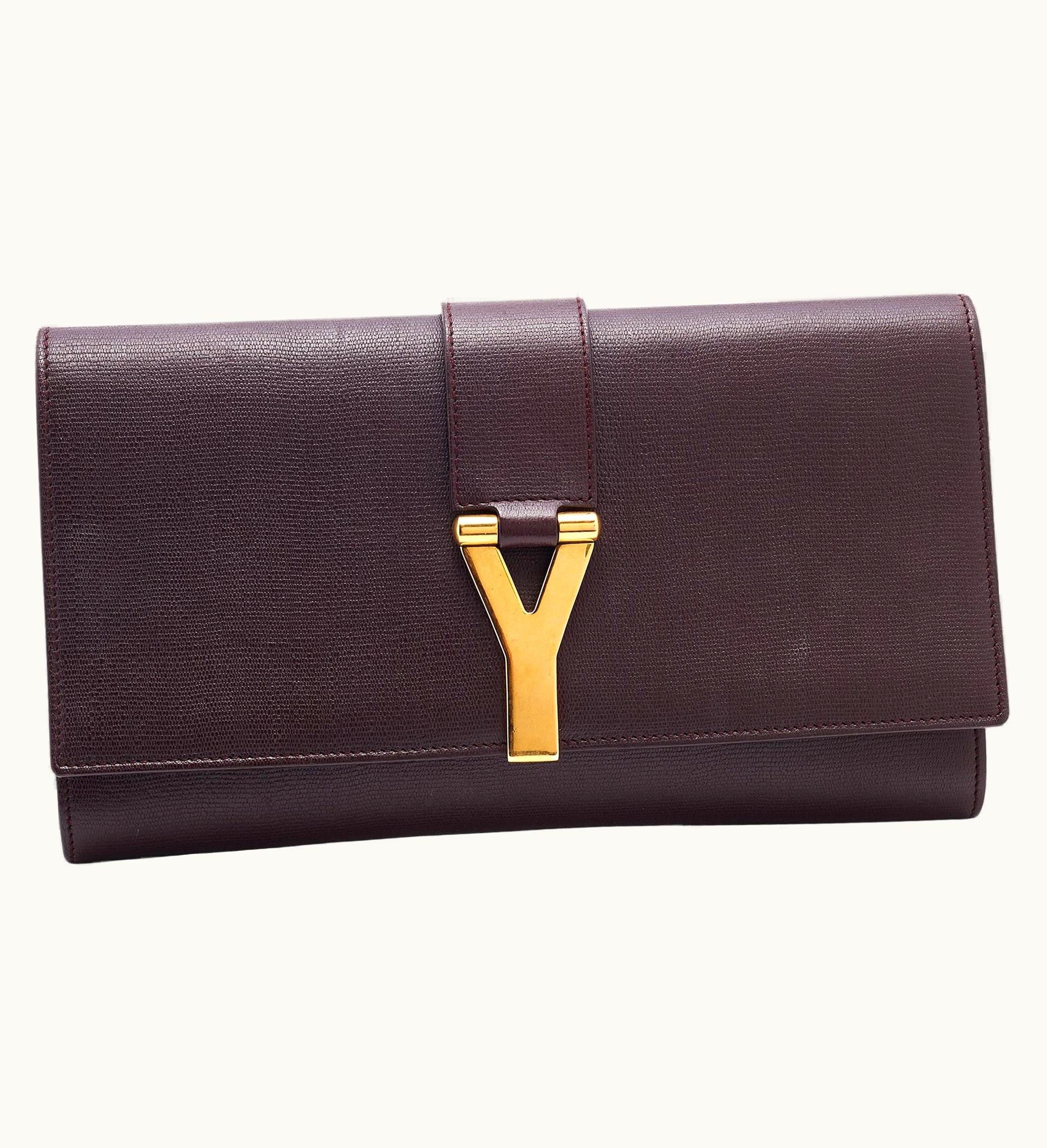 Yves Saint Laurent Burgundy Leather Y-Ligne Clutch | GLINT