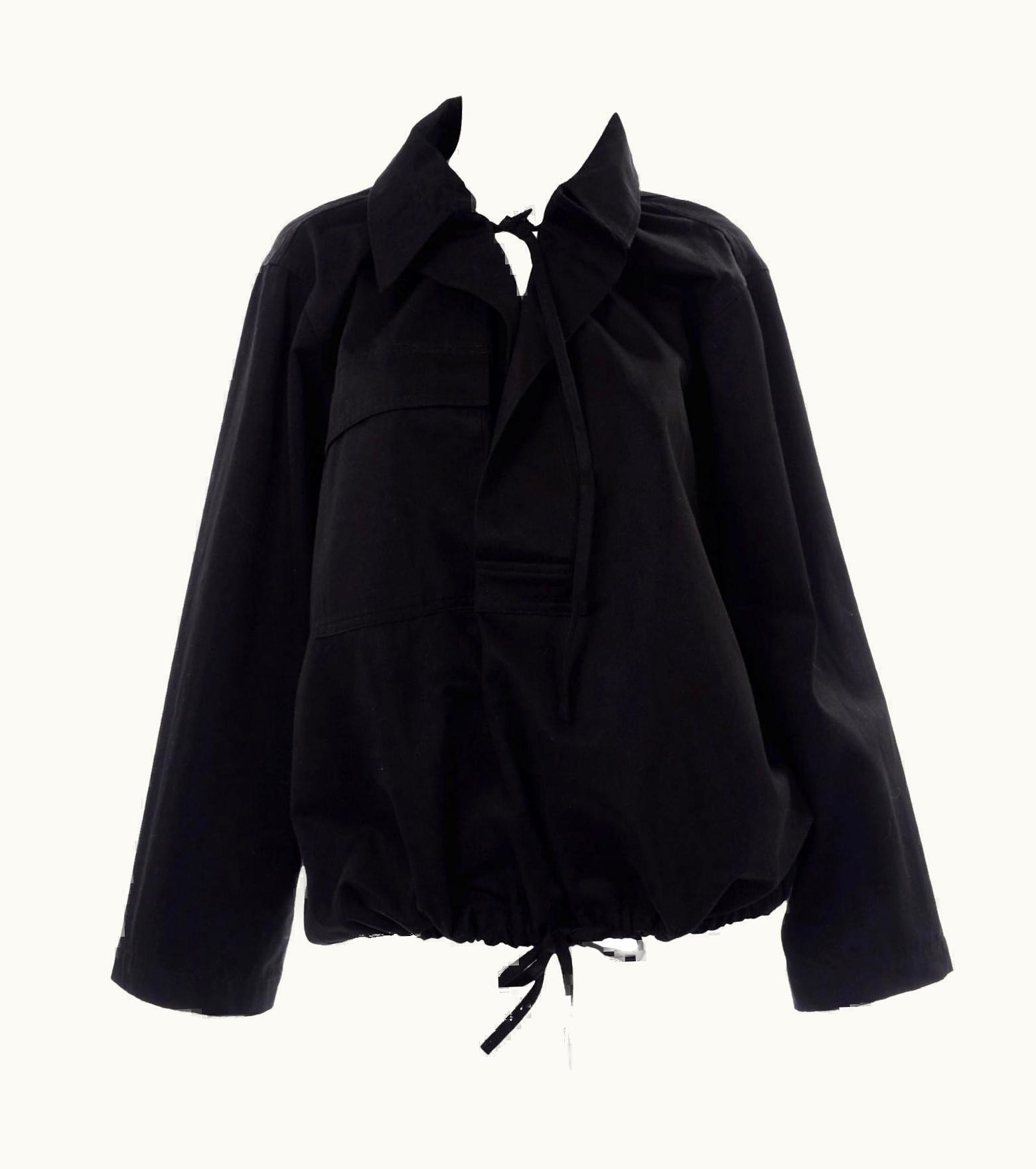Yohji Yamamoto Black Cotton Boxy Drawstring Jacket | GLINT