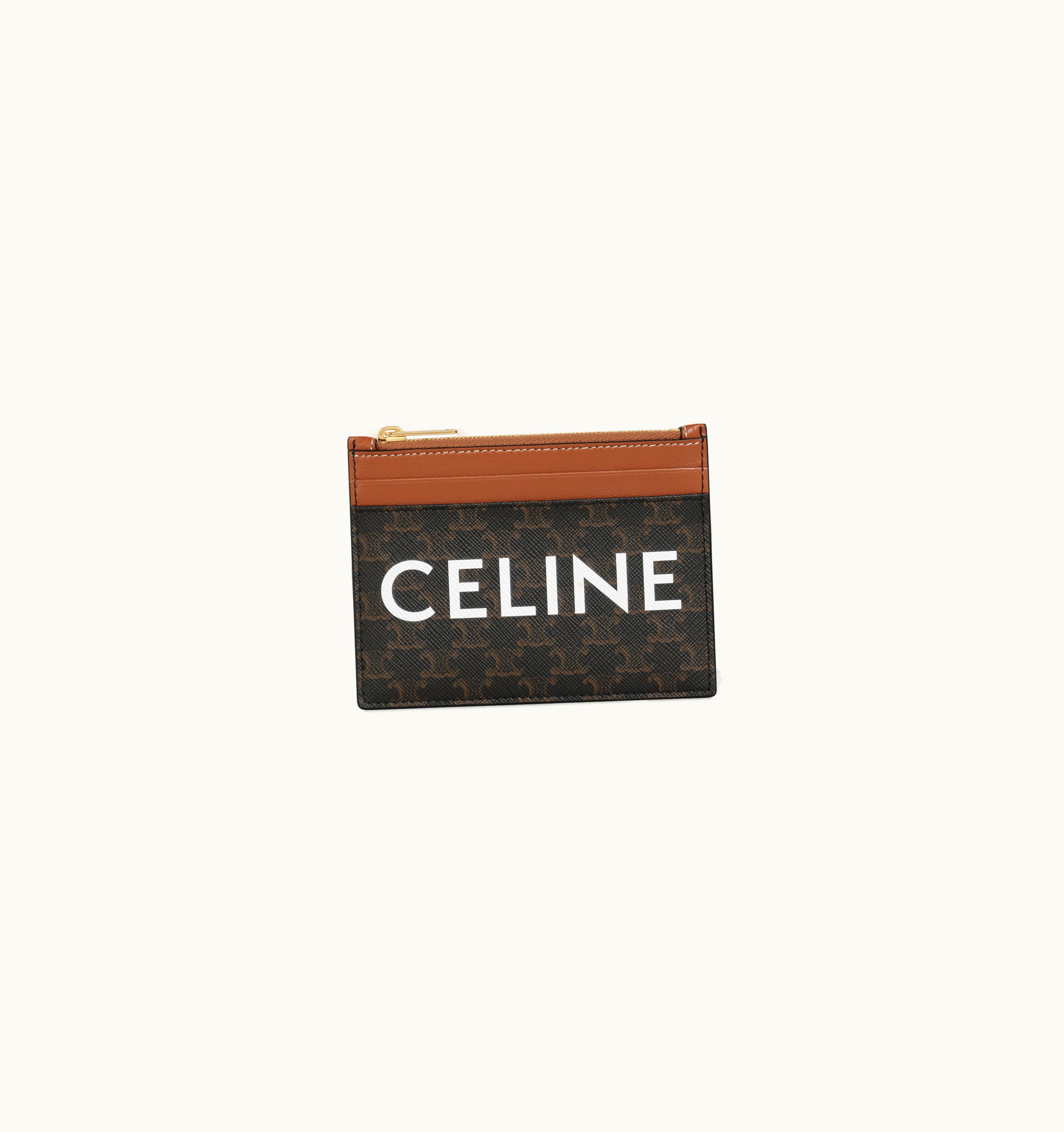 Celine Zipped Purse In Triomphe Canvas And Lambskin With Celine Print Tan | GLINT